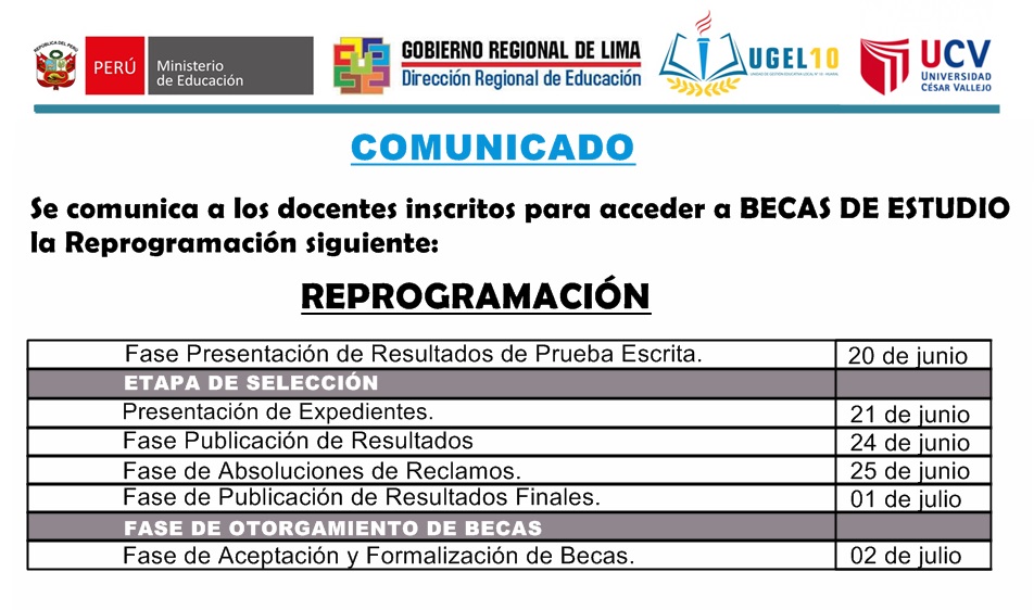 20 Jun,2019 Comunicados COMMENTS BECA DE ESTUDIOS [Reprogramación y Resultados de Prueba Escrita] DESCARGAR (pdf) RELACIÓN DE POSTULANTES APTOS PARA EL CONCURSO DE OTORGAMIENTO DE BECAS DE ESTUDIO DE DESARROLLO DOCENTE