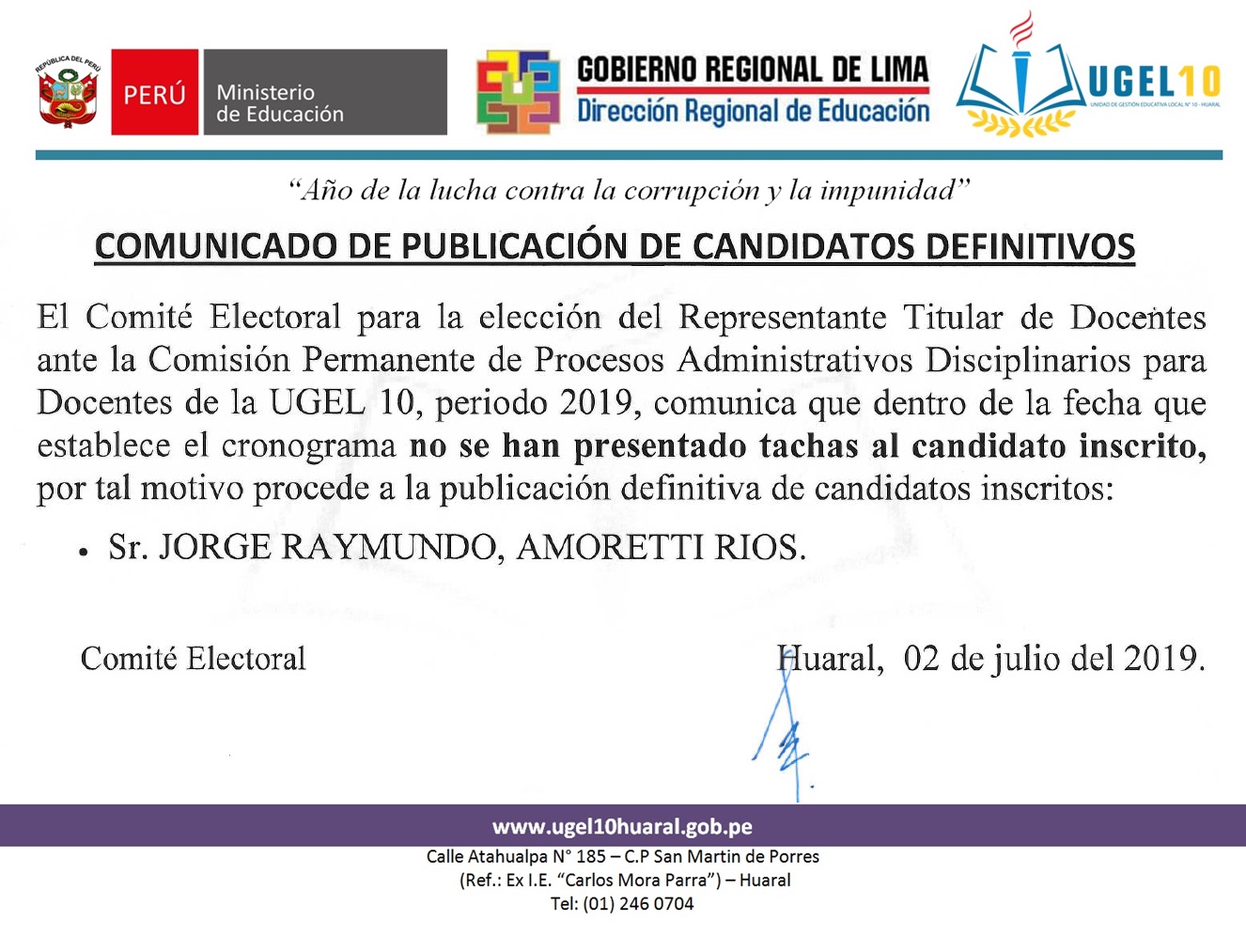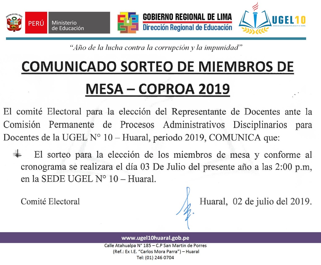 02 Jul,2019 Comunicados COMMENTS COPROA - Comunicados Candidatos Definitivos y Sorteo de Miembros de Mesa