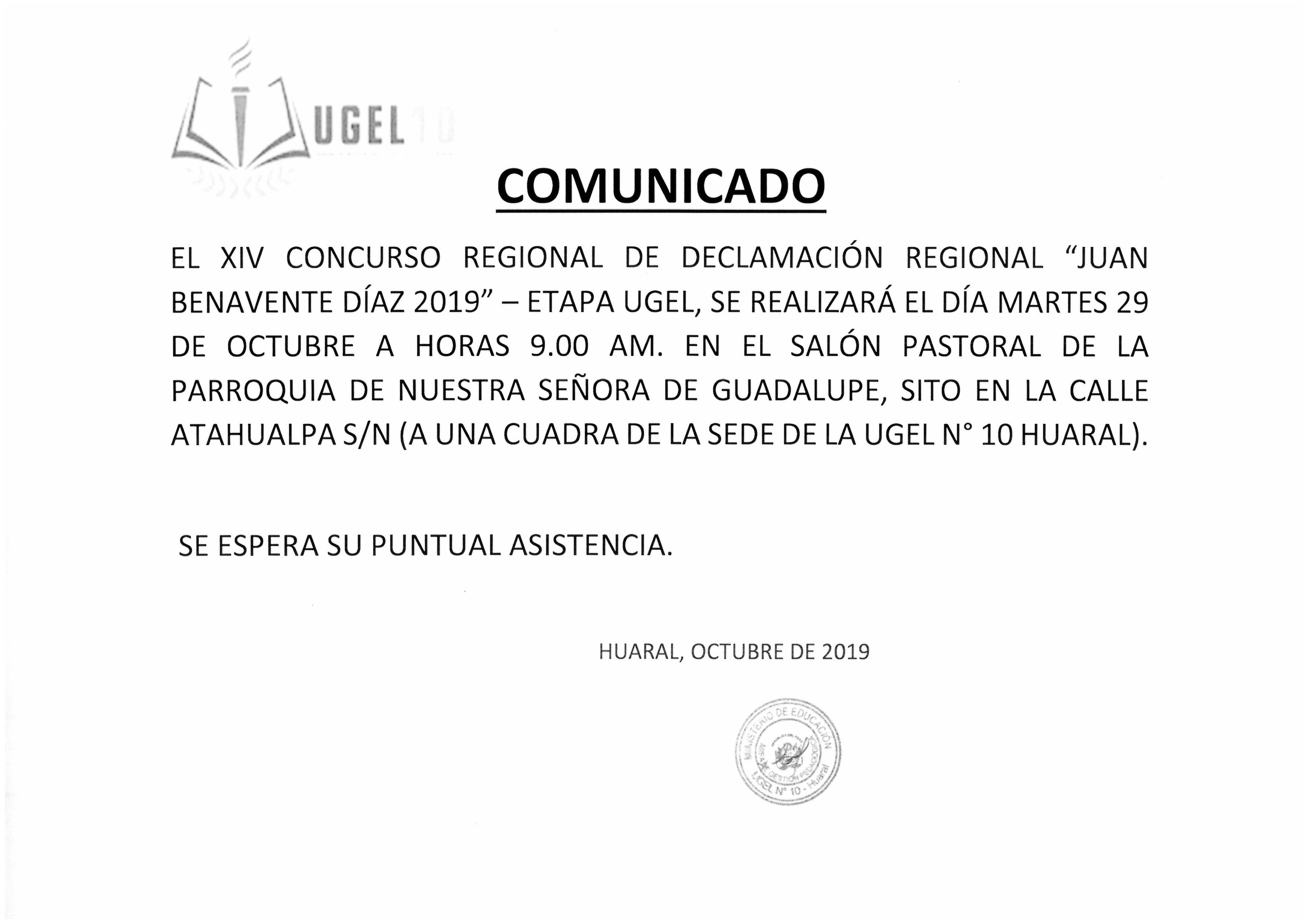 25 Oct,2019 Comunicados COMMENTS XIV CONCURSO REGIONAL DE DECLAMACIÓN REGIONAL "JUAN BENAVENTE DÍAZ 2019"