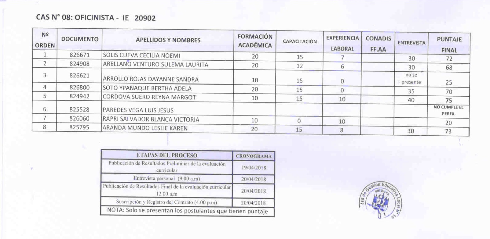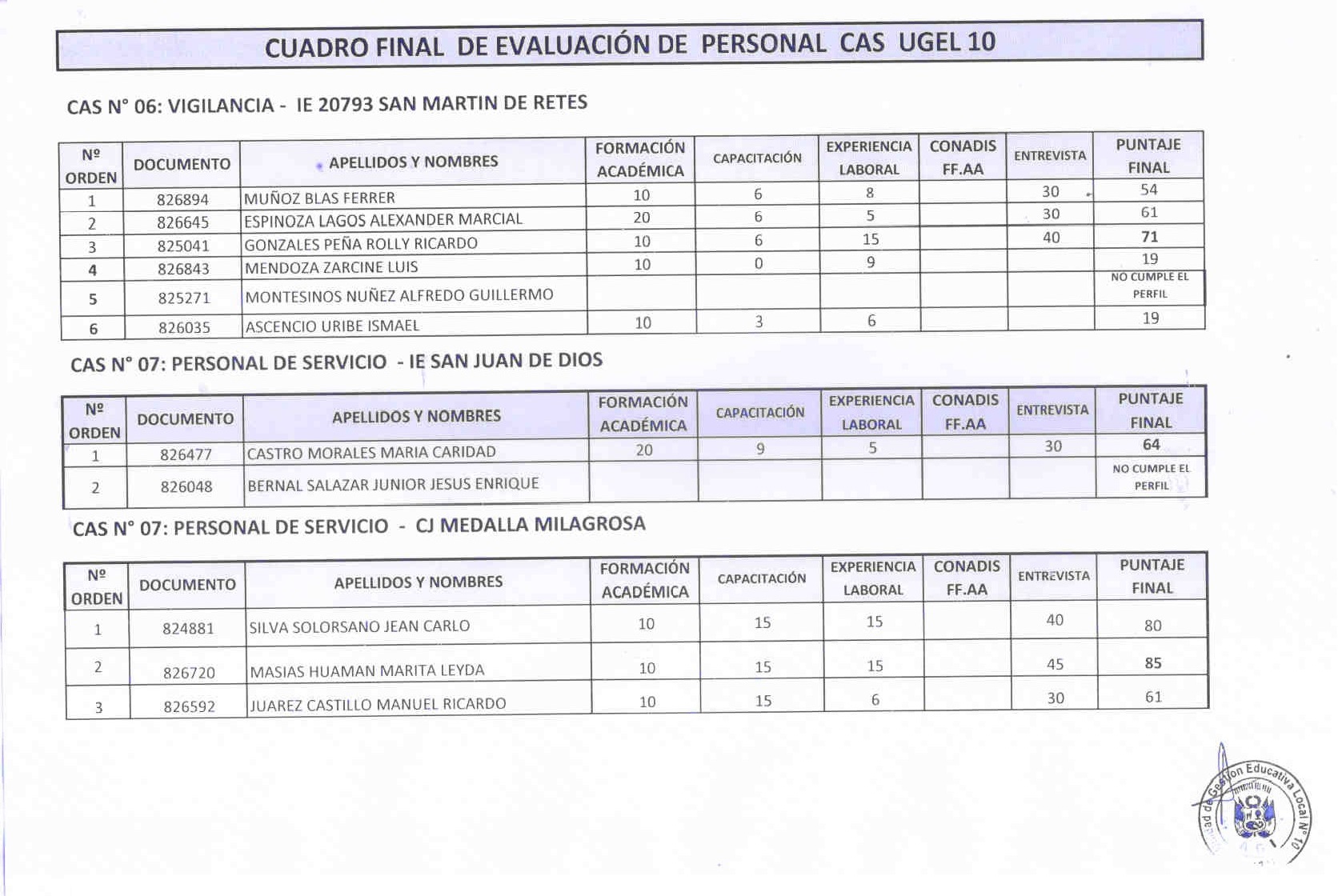 20 Abr,2018 Comunicados COMMENTS Cuadro Final CAS 6, 7, 8 - Vigilancia, personal de servicio, oficinista