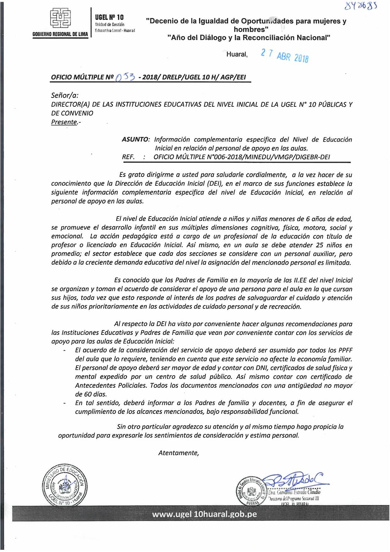 02 May,2018 Comunicados COMMENTS Información complementaria específica del Nivel de Educación Inicial en relación al personal de apoyo en las aulas