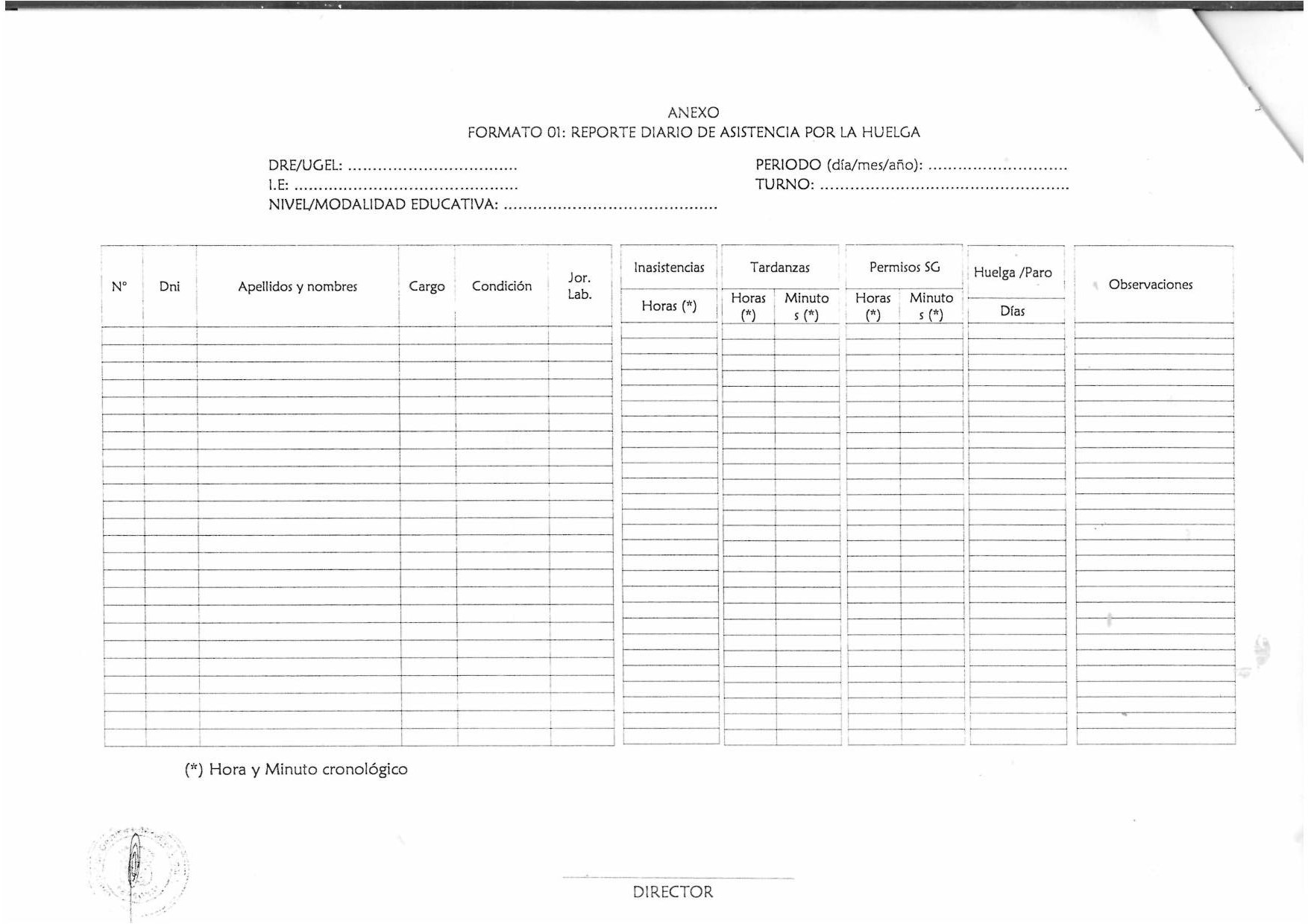 18 Jun,2018 Comunicados COMMENTS Acciones a realizar para garantizar la continuidad del servicio educativo frente al escenario de huelga Ver y descargar Formato 1: Reporte Diario de Asistencia por la Huelga