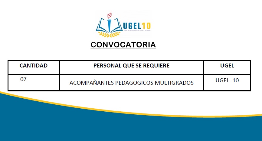 04 Mar,2019 Convocatorias COMMENTS CAS 04 - Acompañantes Pedagógicos Multigrados Ugel 10 ver convocatoria y descargar anexos