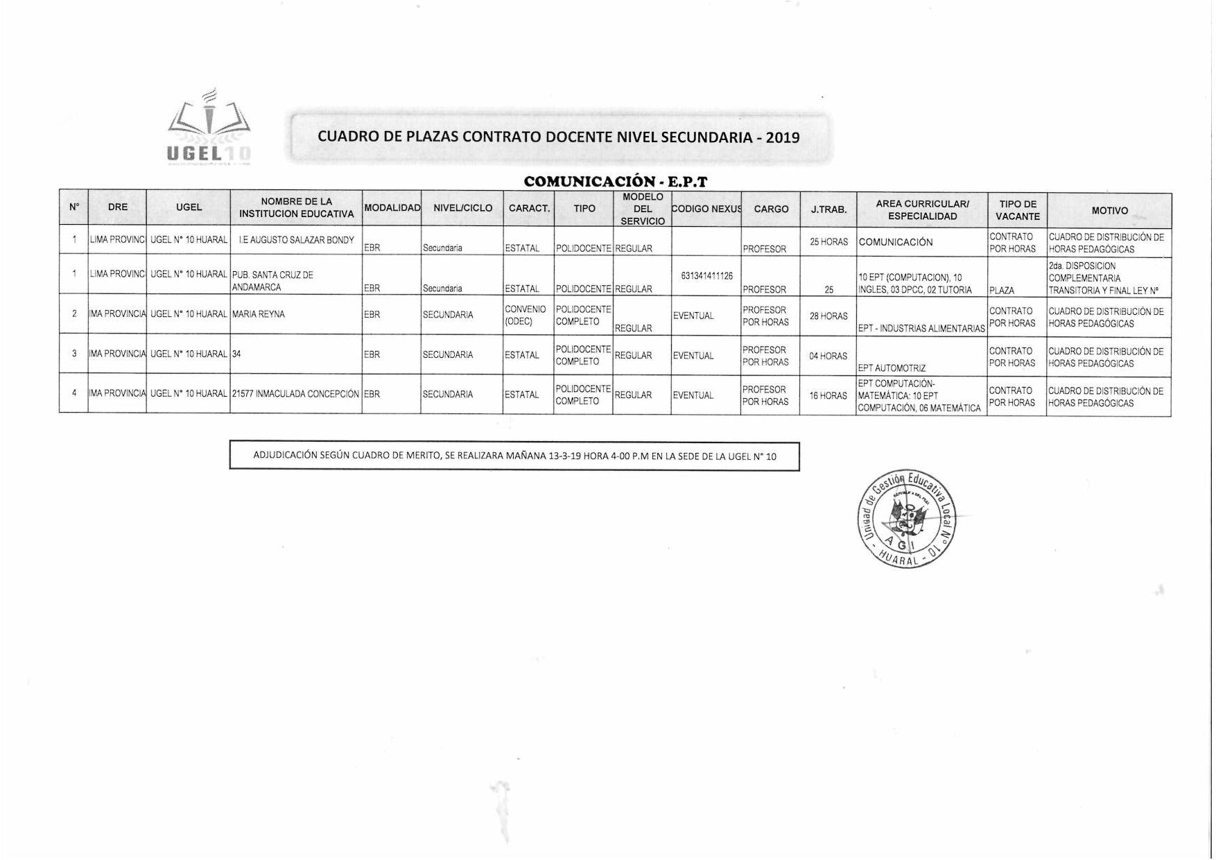 12 Mar,2019 Convocatorias COMMENTS Plazas de Contrato Docente Según Cuadro de Méritos [Inicial - Secundaria]