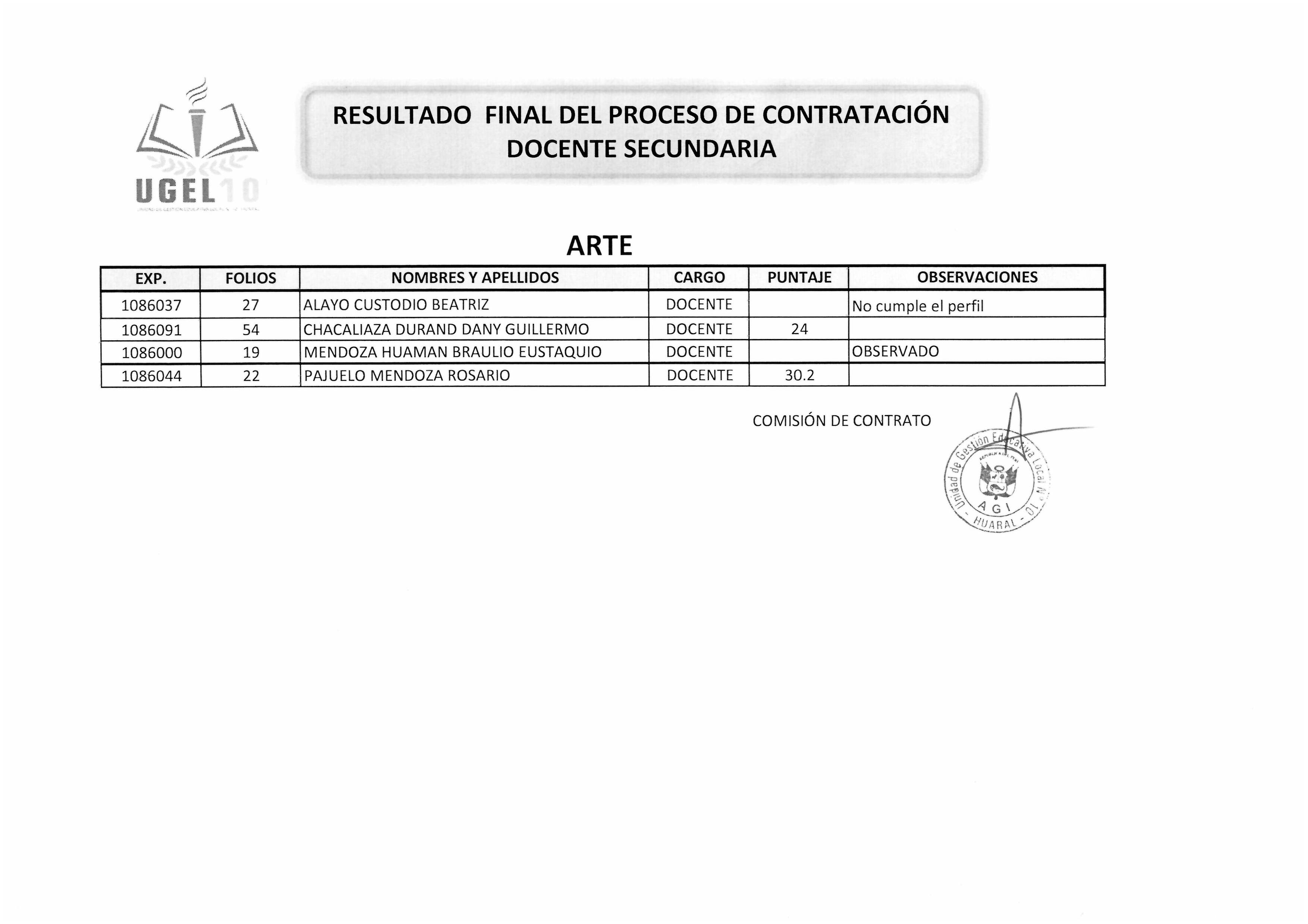 27 May,2019 Convocatorias COMMENTS RESULTADO FINAL DEL PROCESO DE CONTRATACIÓN DOCENTE SECUNDARIA - ARTE
