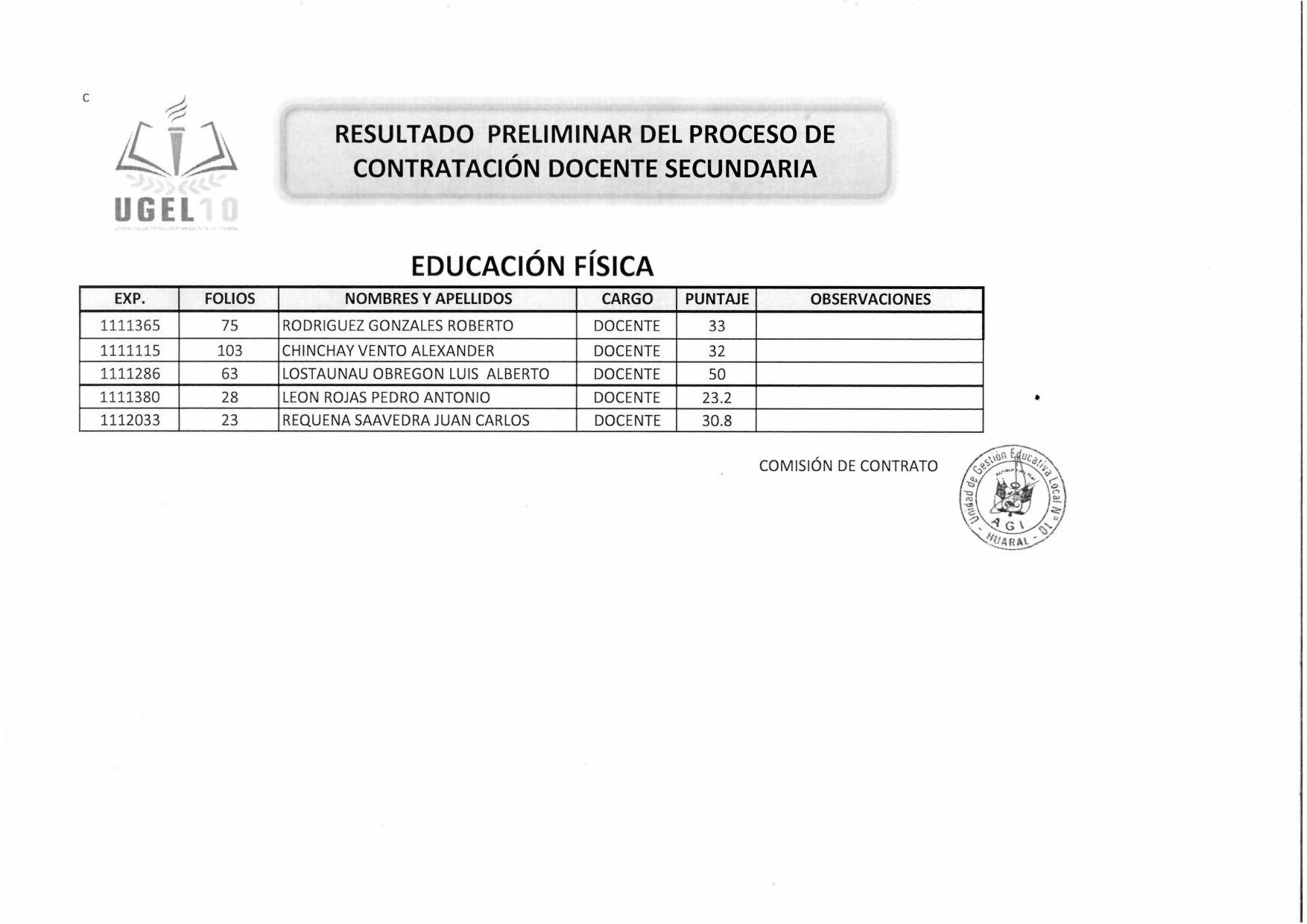 13 Jun,2019 Convocatorias COMMENTS Resultado Preliminar del Proceso de contratación Docente Secundaria [Educ. Física - CTA]