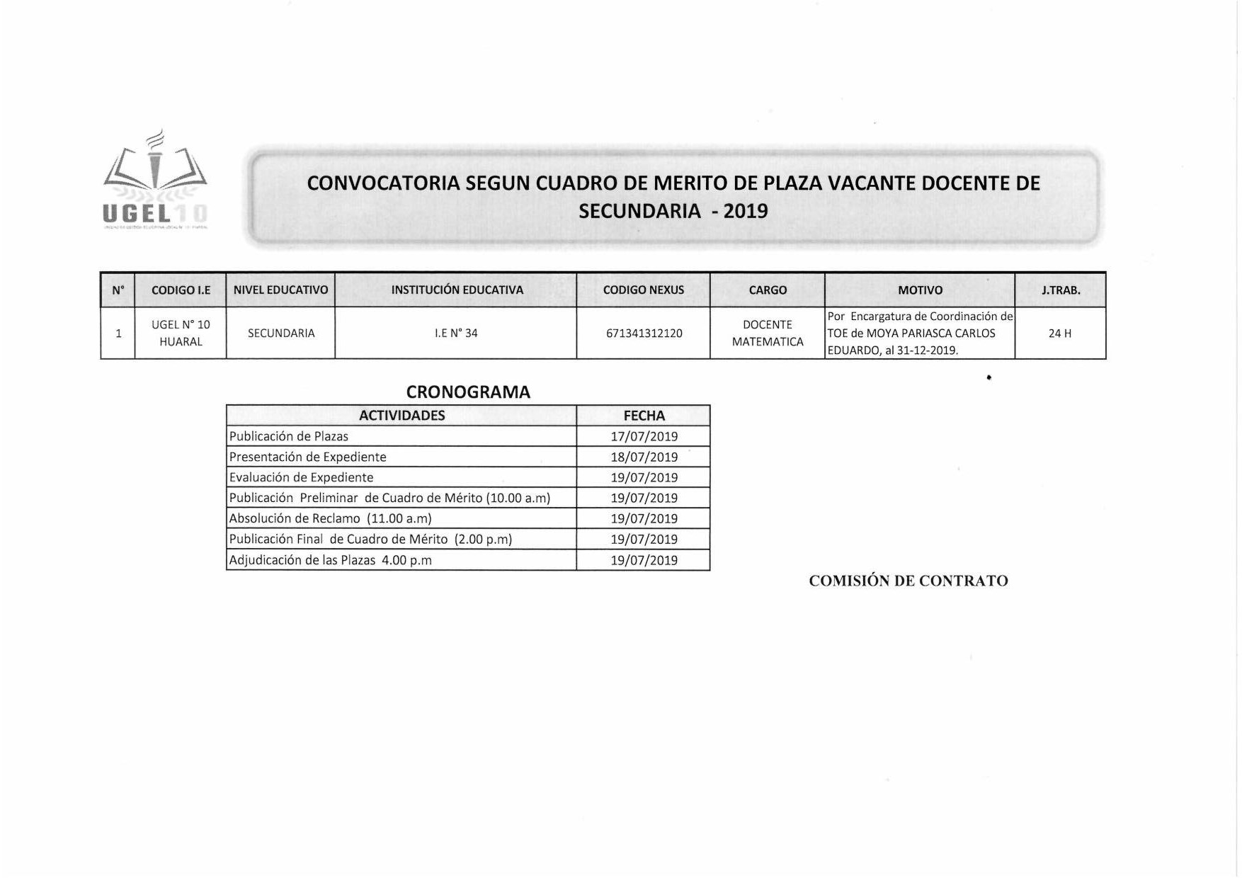 17 Jul,2019 Convocatorias COMMENTS Convocatoria Según Cuadro de Mérito Plaza Vacante de Docente Secundaria.