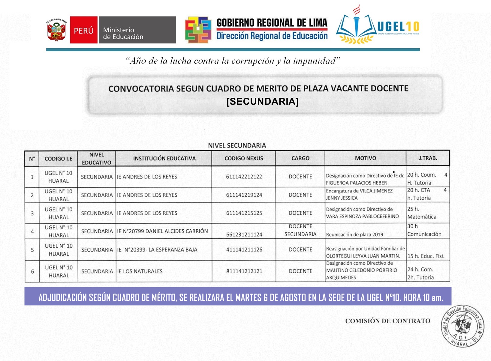 02 Ago,2019 Convocatorias COMMENTS Convocatoria Según Cuadro de Mérito de Plaza Vacante Docente [Secundaria]