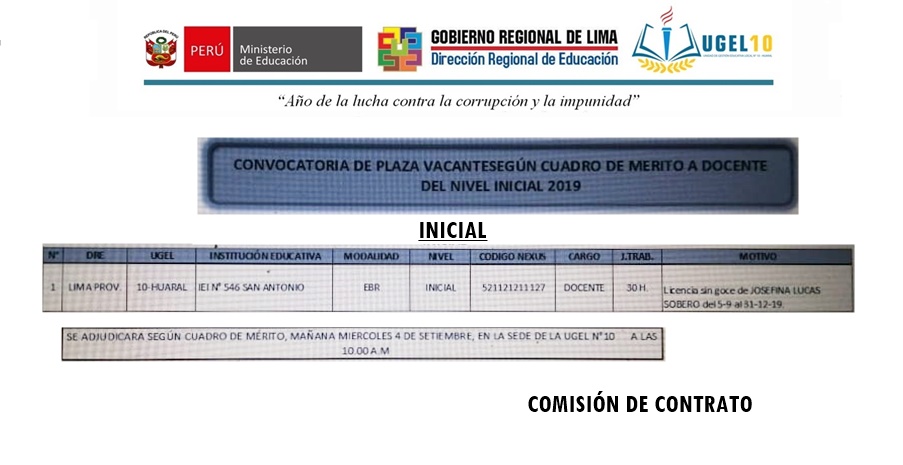 03 Sep,2019 Convocatorias COMMENTS Convocatoria de Plaza Vacante Según Cuadro de Mérito de Docente (nivel inicial)
