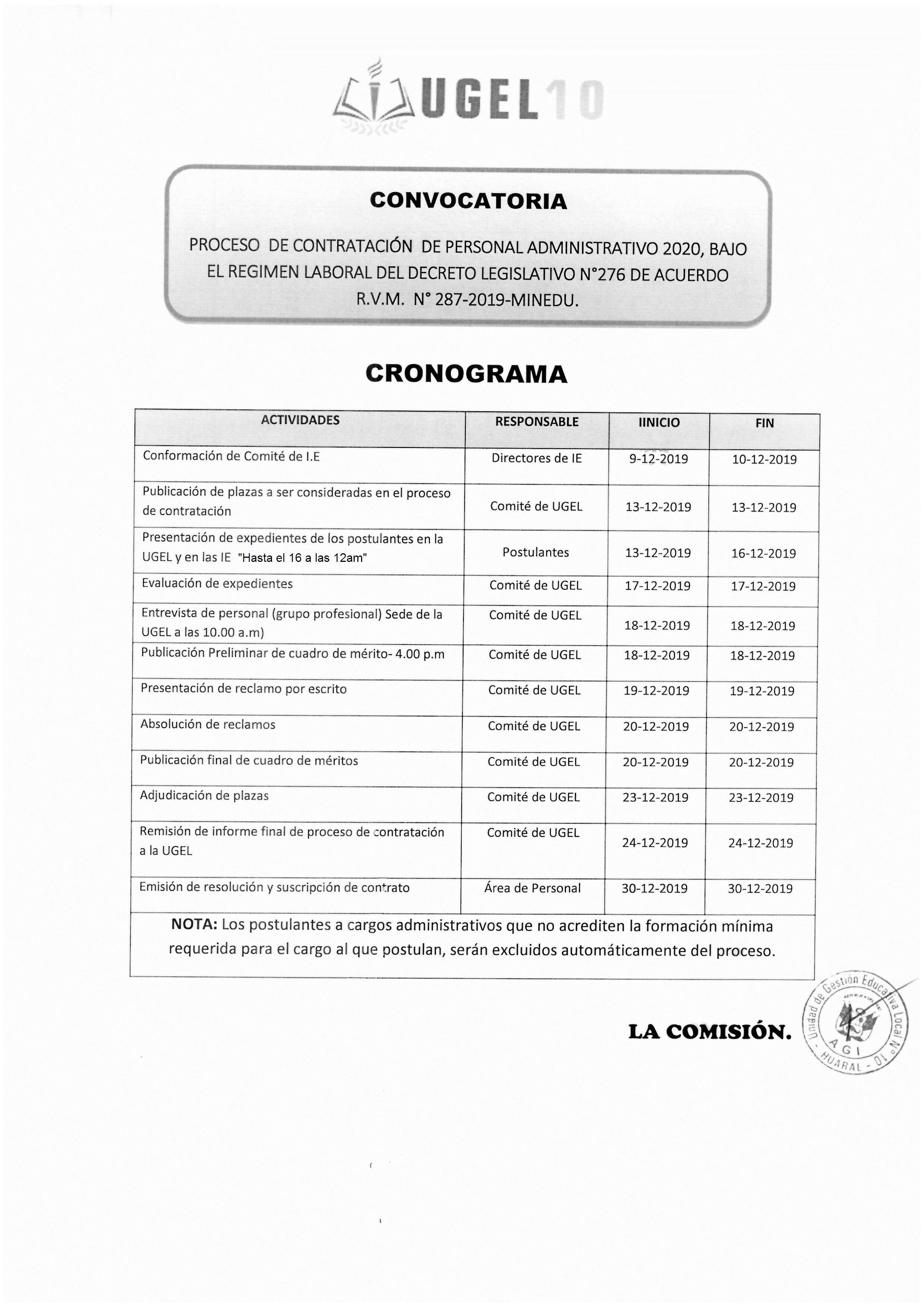 13 Dic,2019 Convocatorias COMMENTS REPROGRAMACIÓN DEL PROCESO DE CONTRATCIÓN DE PERSONAL ADMINISTRATIVO 2020