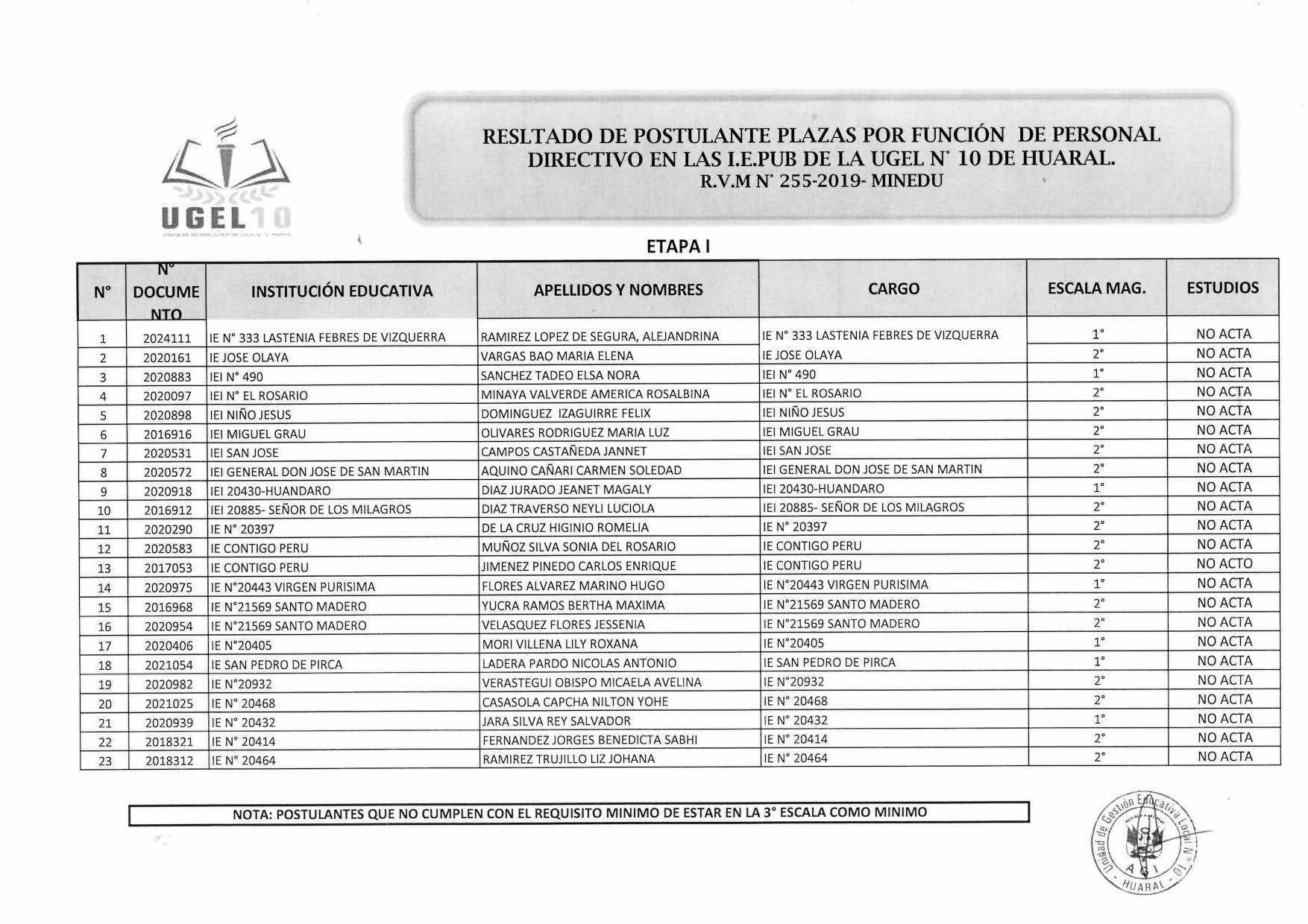 02 Ene,2020 Convocatorias COMMENTS RESULTADO DE POSTULANTE PLAZAS POR FUNCIÓN DE PERSONAL DIRECTIVO EN LAS I.E.PUB