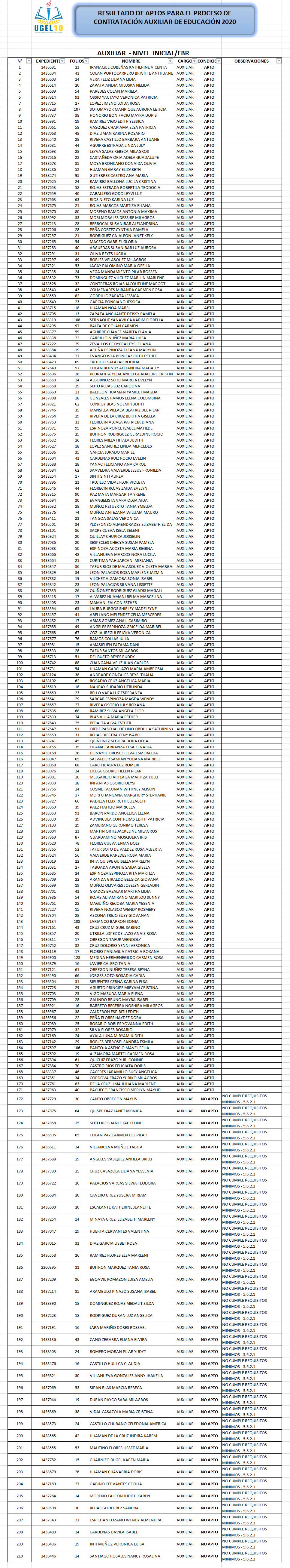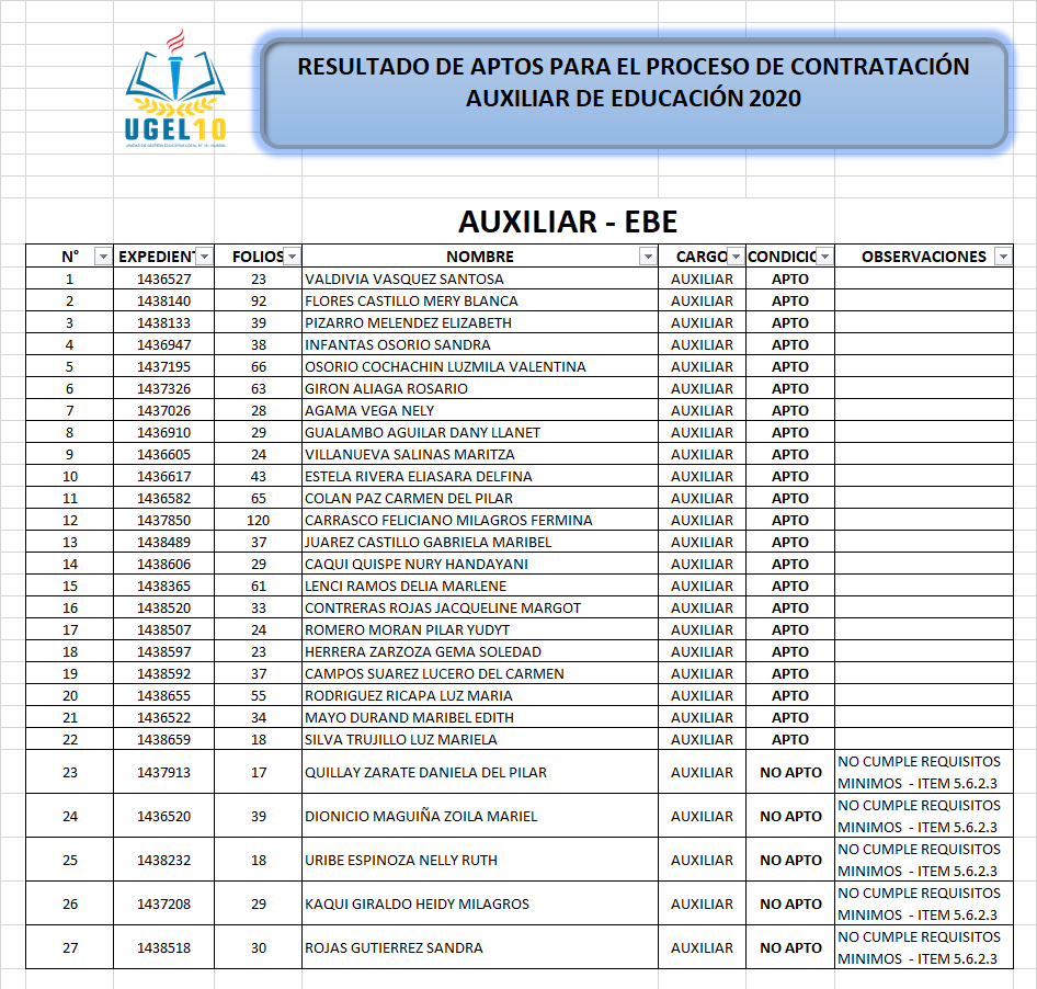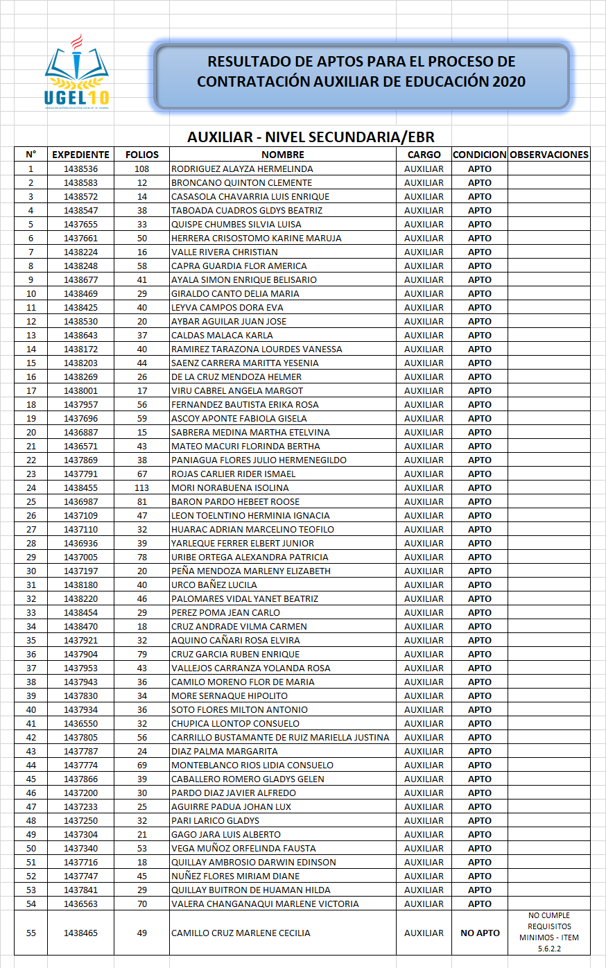 06 Feb,2020 Convocatorias COMMENTS Resultado de Aptos para el Proceso de Contratación Auxiliar de Educación 2020.