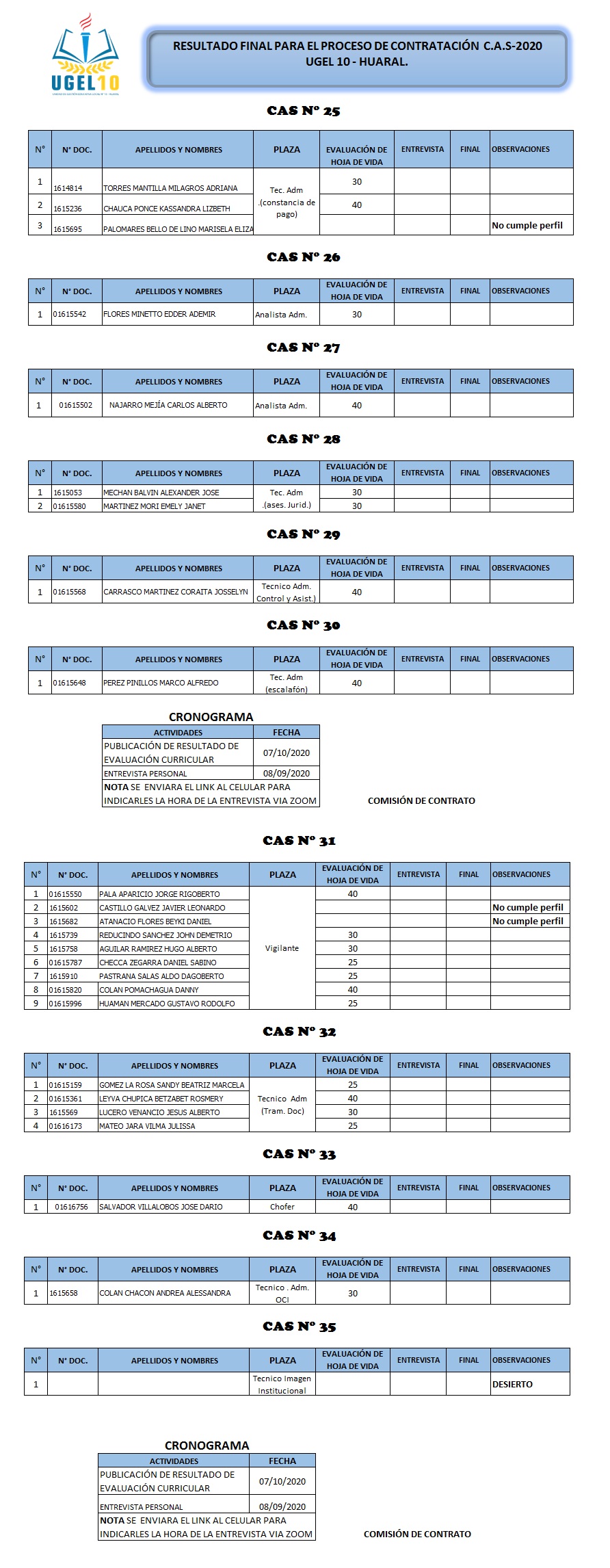 07 Oct,2020 Convocatorias COMMENTS Resultados del Proceso de Contratación CAS 25, 26, 27, 28, 29, 30, 31, 32, 33, 34, 35