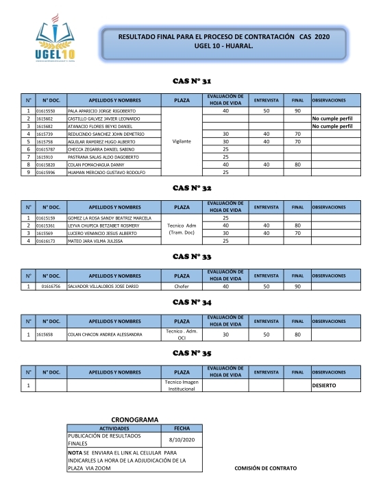 08 Oct,2020 Convocatorias COMMENTS Resultados Finales del Proceso de Contratación CAS 25, 26, 27, 28, 29, 30, 31, 32, 33, 34, 35