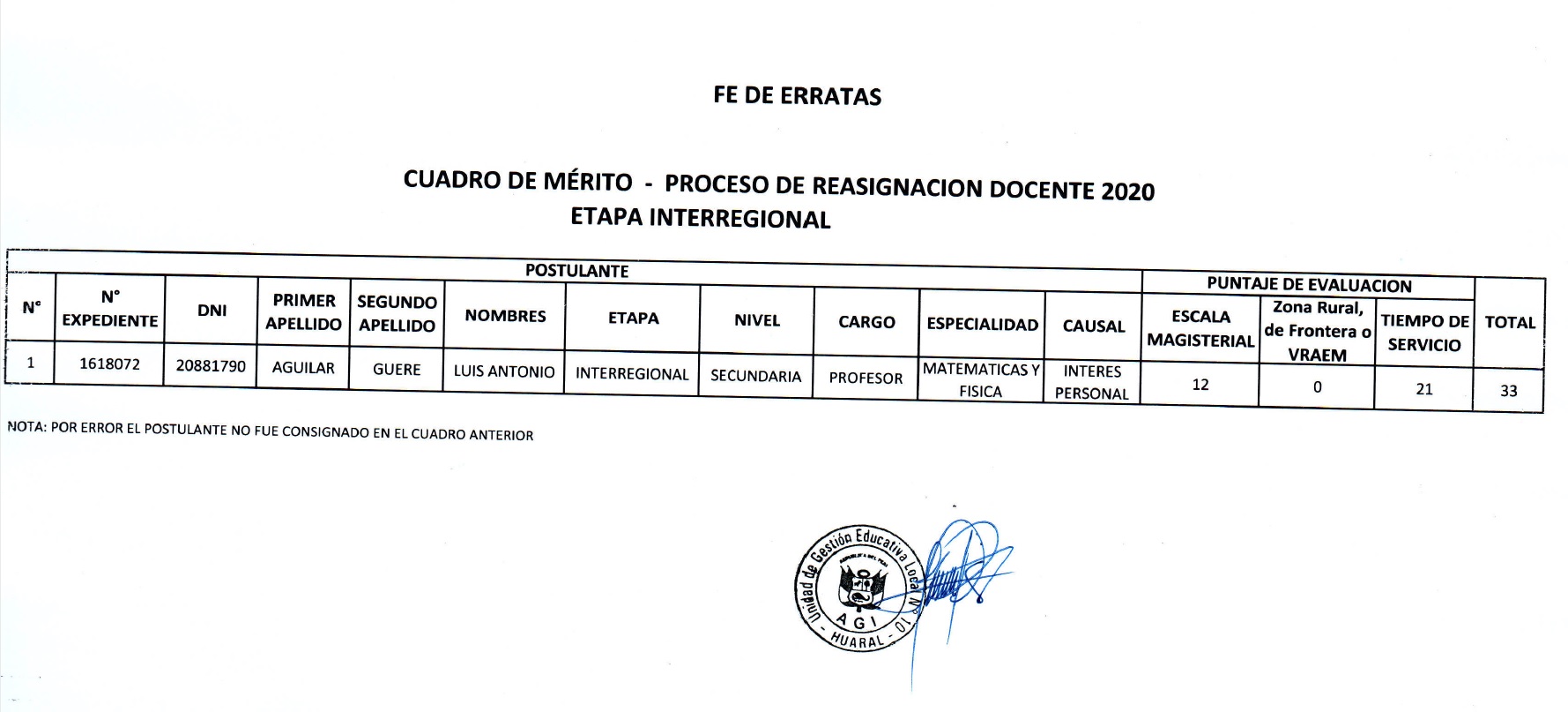 25 Nov,2020 Convocatorias COMMENTS FE DE ERRATAS - CUADRO DE MÉRITO REASIGNACIÓN DOCENTE ETAPA INTERREGIONAL
