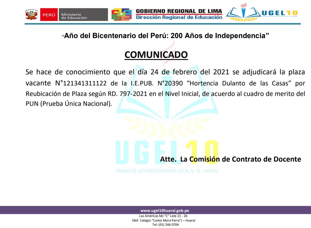Tema: Adjudicacion de plaza de contrato del Nivel INicial