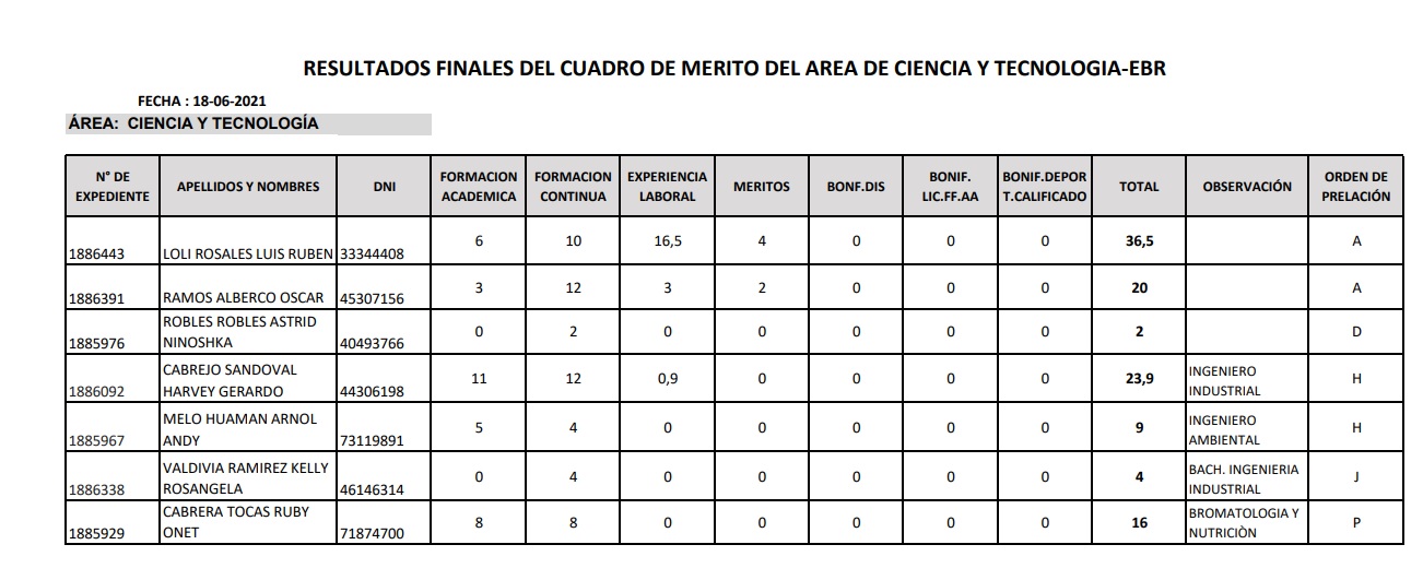 Tema: ADJUDICACIÓN DE EBR Y EBA