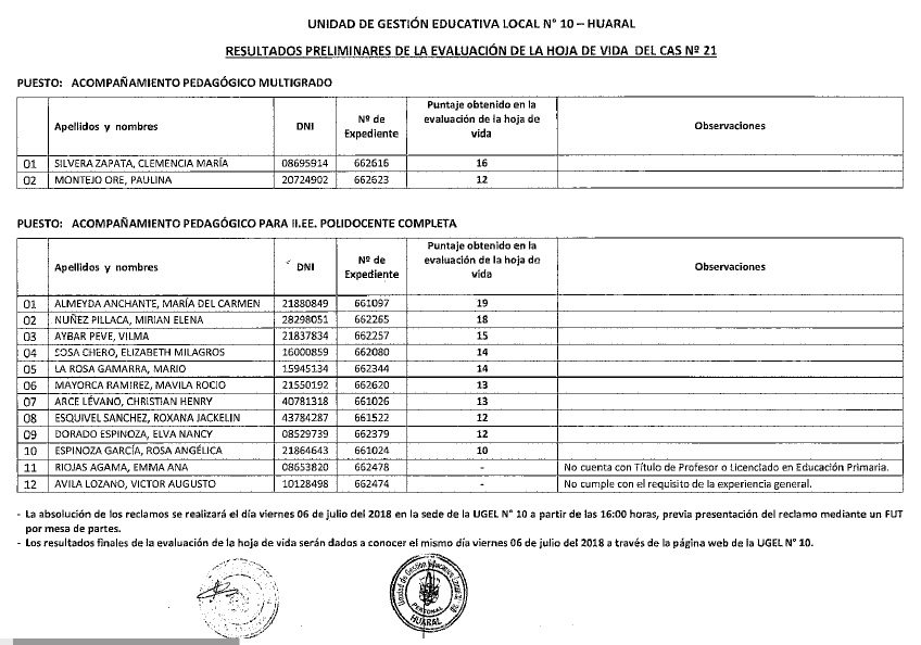 05 Jul,2018 Convocatorias COMMENTS RESULTADOS PRELIMINARES DE LA EVALUACIÓN DE LA HOJA DE VIDA DEL CAS Nº21