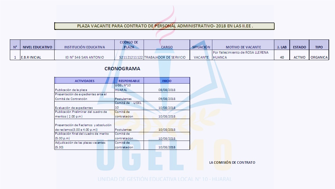 08 Ago,2018 Convocatorias COMMENTS Plaza Vacante para la Contratación de Personal Administrativo en I.E.I "San Antonio"
