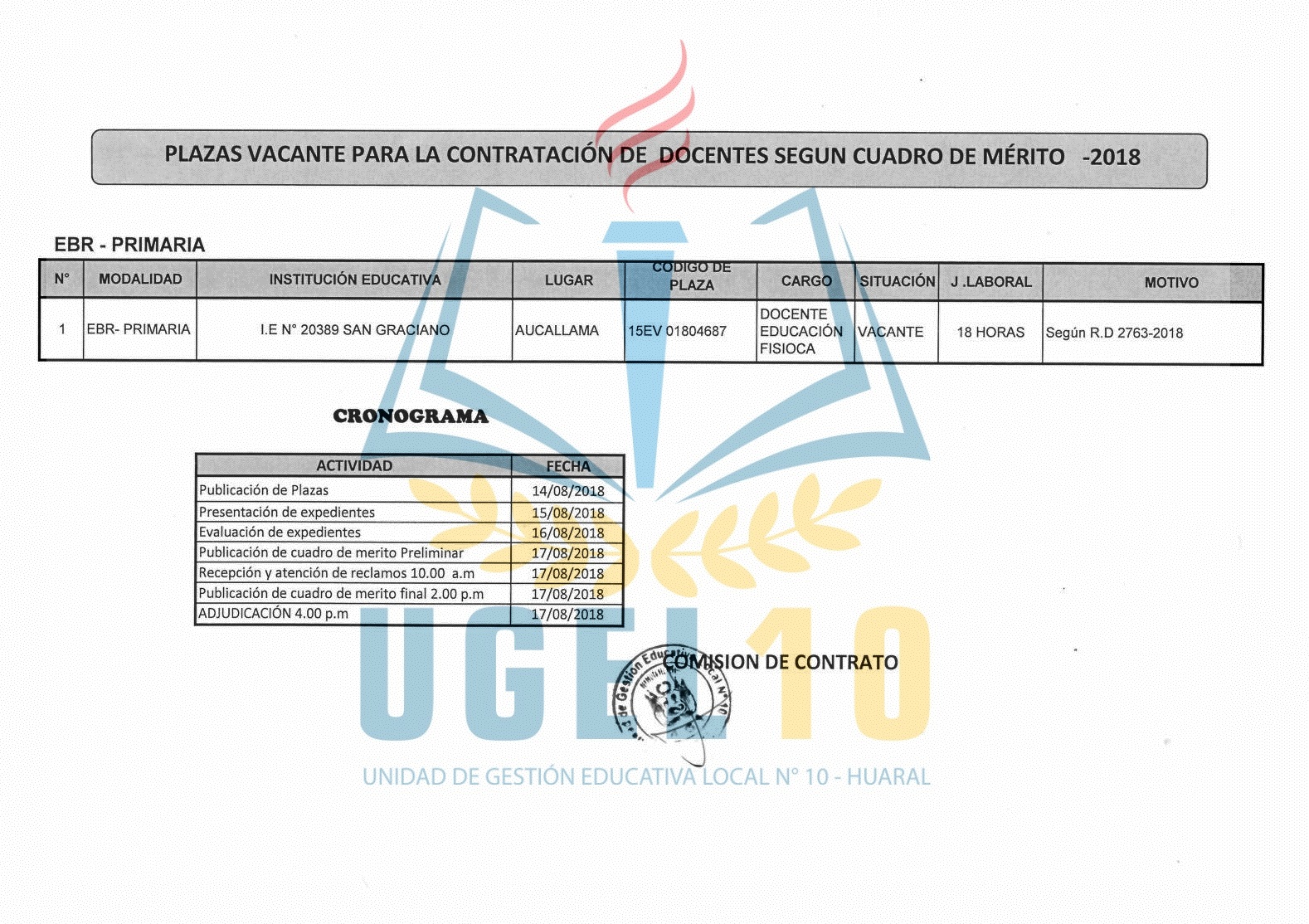 14 Ago,2018 Convocatorias COMMENTS Plaza Vacante para la Contratación de Docente según Cuadro de Mérito 2018