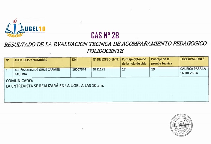 16 Ago,2018 Convocatorias COMMENTS CAS 28 - Resultado de Evaluación Técnica de Acompañamiento Pedagógico Polidocente