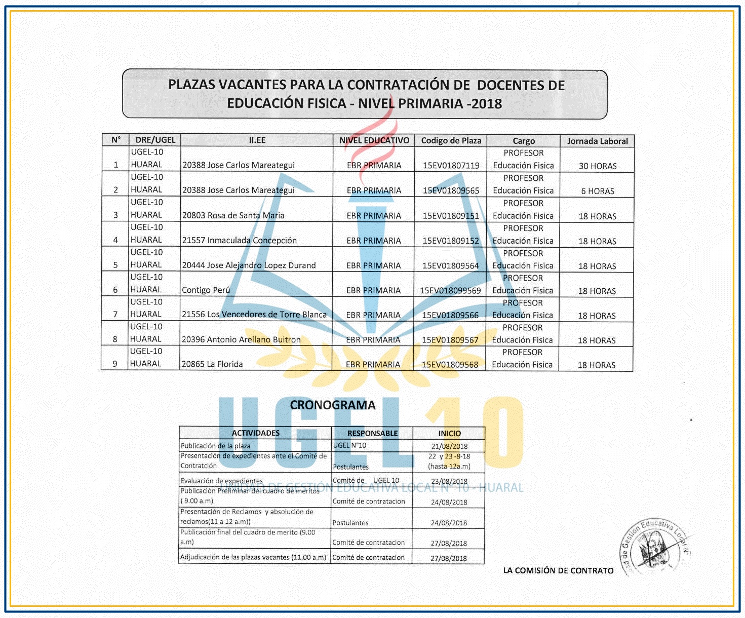 21 Ago,2018 Convocatorias COMMENTS Plaza Vacante para la Contratación de Docentes de Educ. Física [Nivel Primaria]