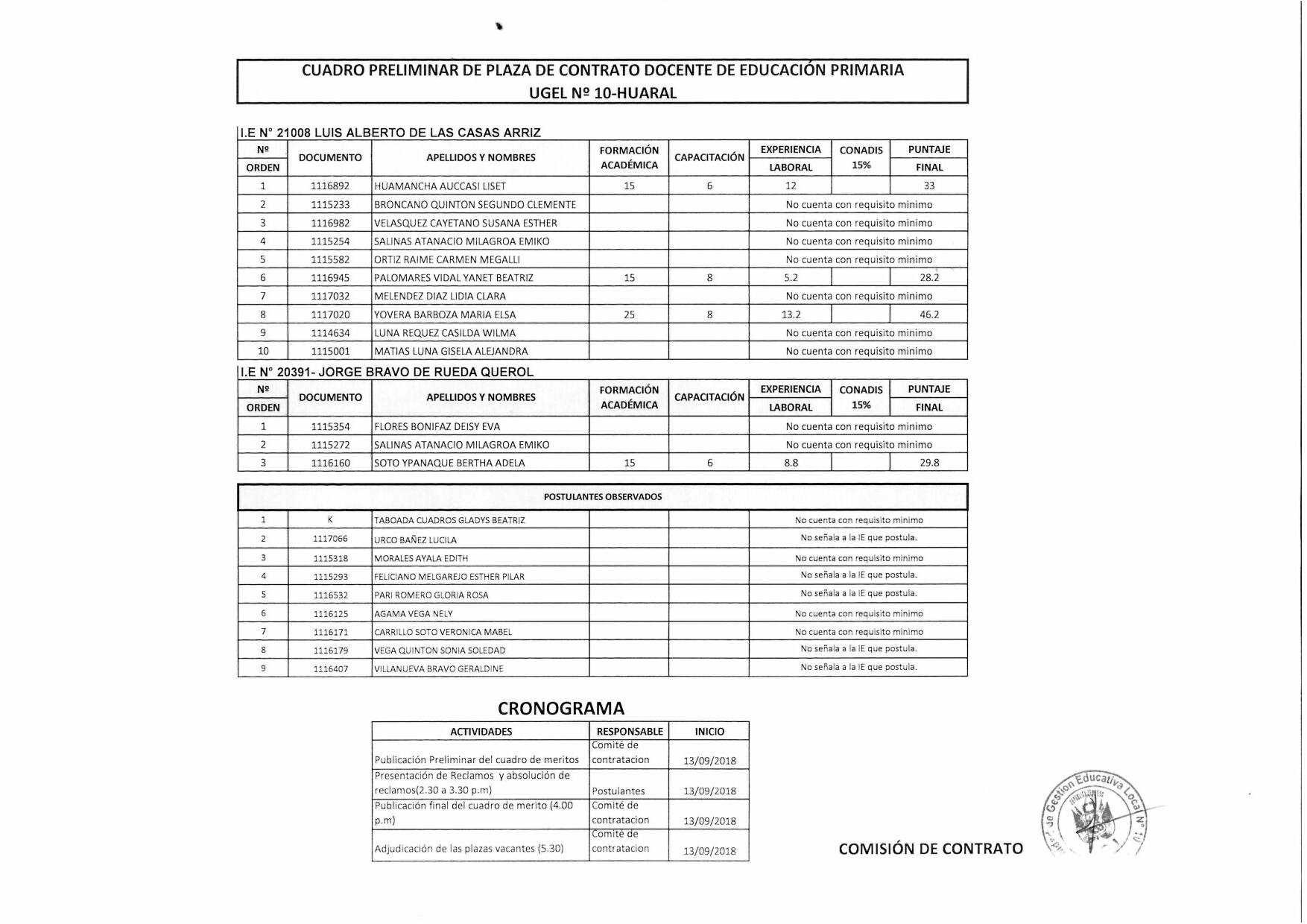 13 Sep,2018 Convocatorias COMMENTS CUADRO PRELIMINAR DE PLAZA DE CONTRATO DOCENTE DE EDUCACIÓN PRIMARIA