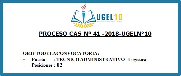 27 Sep,2018 Convocatorias COMMENTS CAS N°41 - Convocatoria Administrativo - Logística. ver convocatoria y anexos