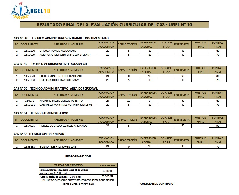 02 Oct,2018 Convocatorias COMMENTS Ressultado Final de Evaluaciòn CAS 41, 42, 43, 44, 45, 46, 48, 49, 50, 51 y 52