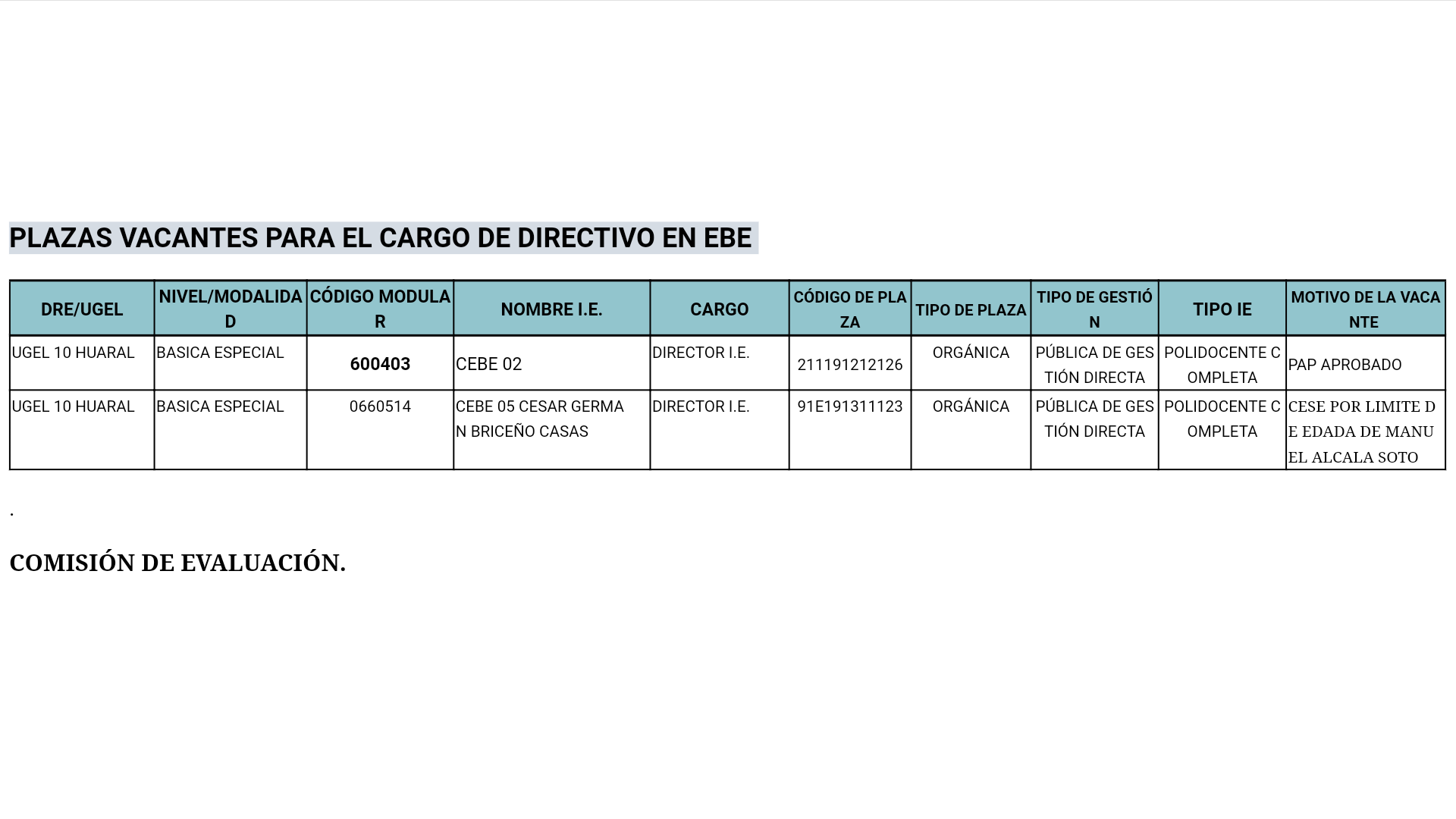 20 Ene,2019 Convocatorias COMMENTS Proceso de Encargo de Plazas Vacantes de Cargos de Directivo en EBE 2019
