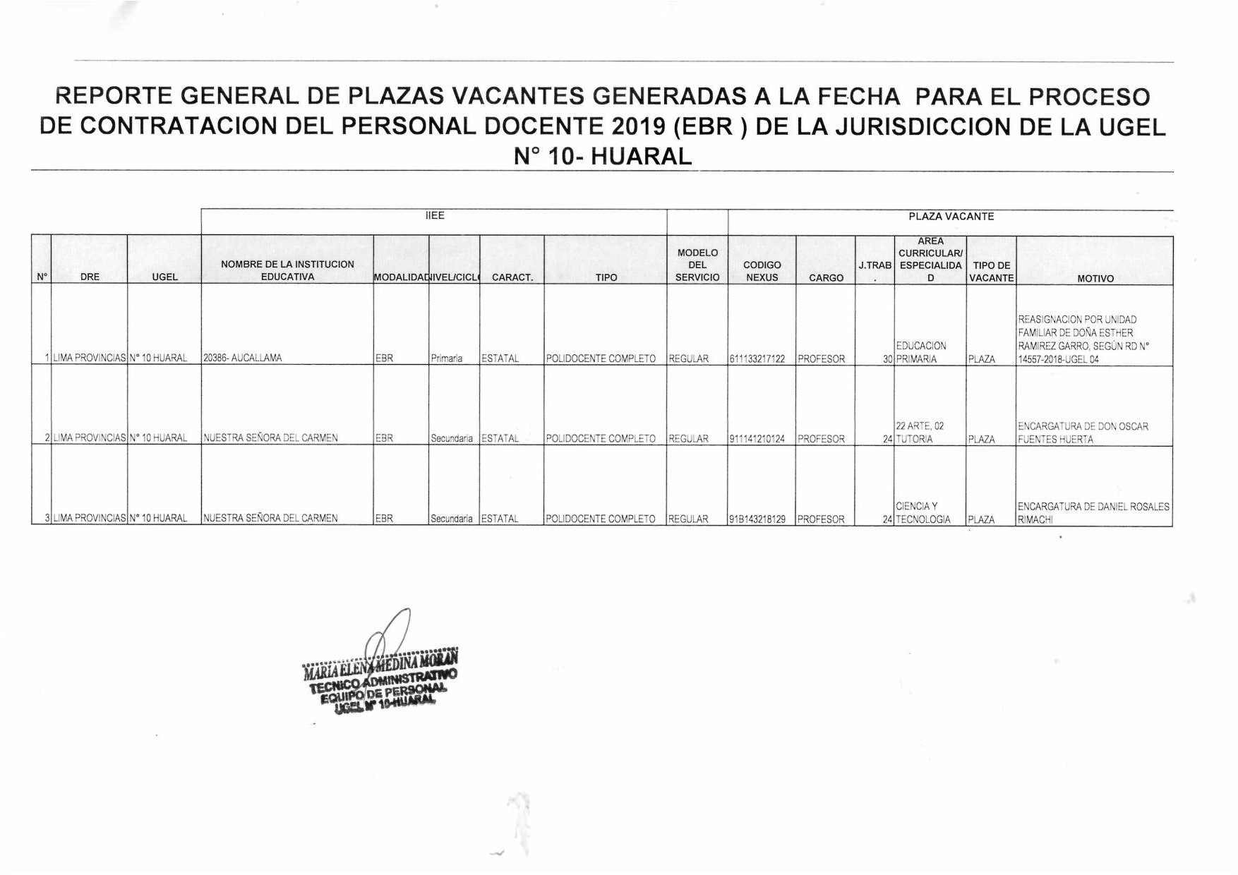22 Ene,2019 Convocatorias COMMENTS Reporte General de Plazas Vacantes Generadas a la Fecha para el Proceso de Contratación del Personal Docente 2019 (EBR)