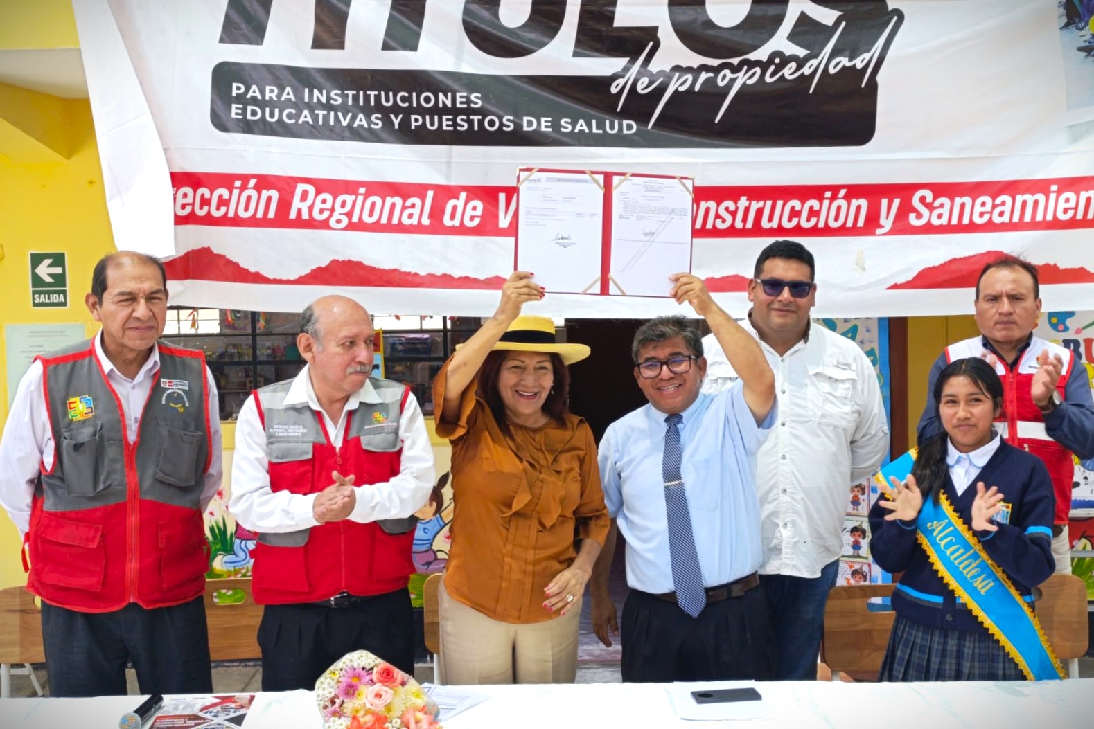 El acto fue encabezado por la Gobernadora Regional, Rosa Vásquez, quien destacó la importancia de este documento para asegurar la formalidad y protección del patrimonio educativo.