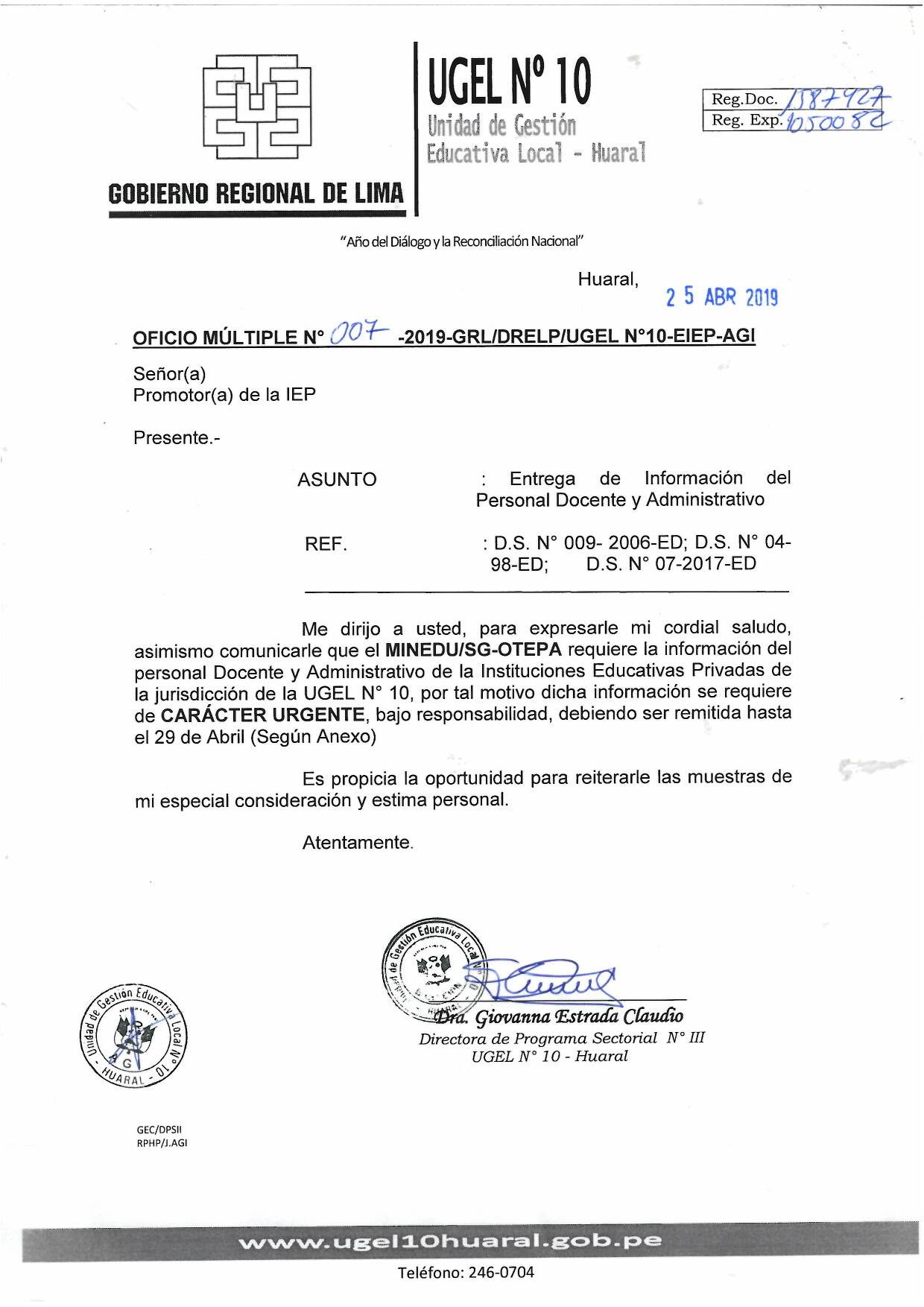 25 Abr,2019 Comunicados COMMENTS Para II.EE Privadas - Se requiere Información del Personal Docente y Administrativo.