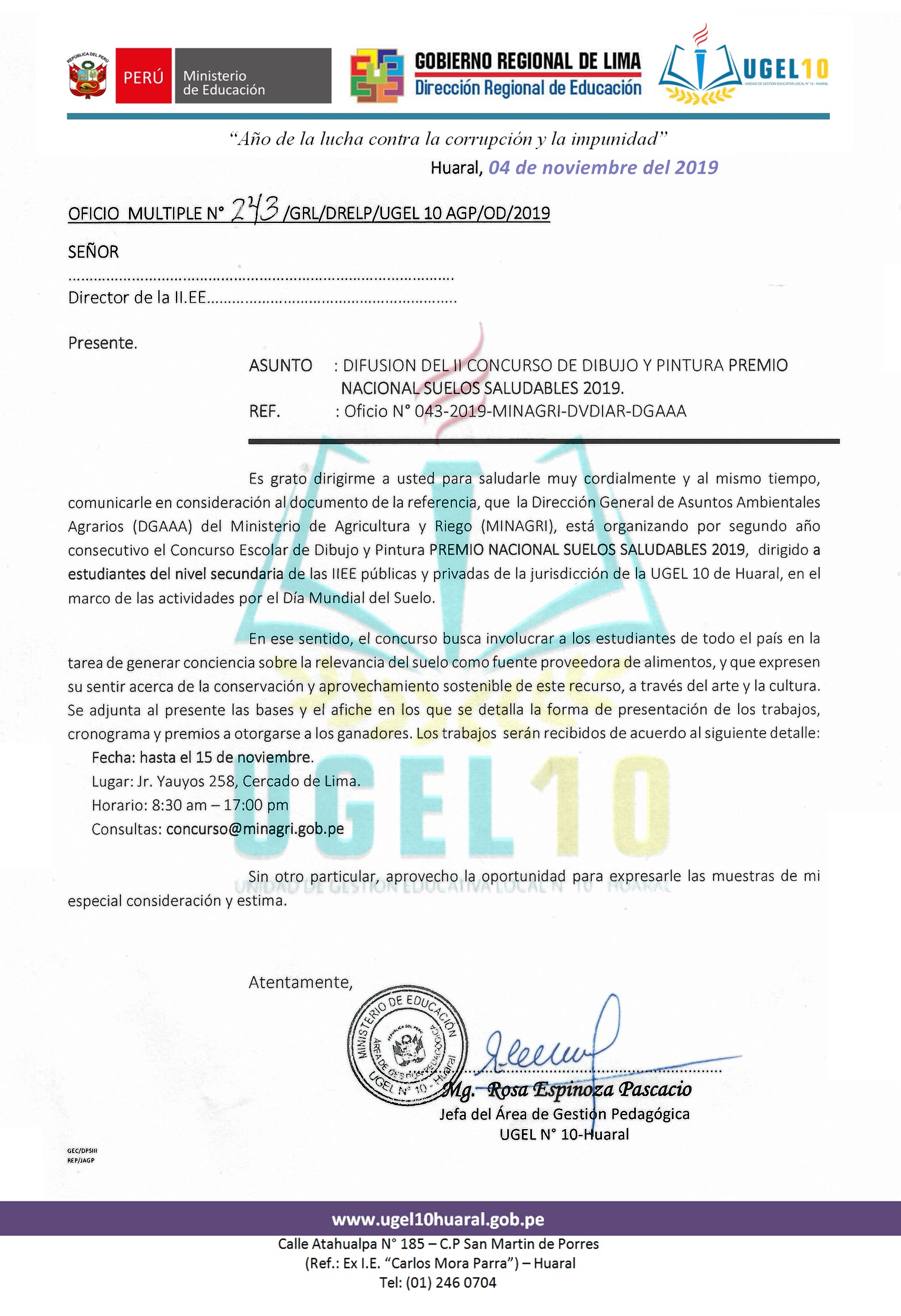 05 Nov,2019 Comunicados COMMENTS Concurso de Dibujo y Pintura "Suelos Saludables 2019" - Premio Nacional ⇒DESCARGAR BASES DEL CONCURSO SUELOS SALUDABLES 2019