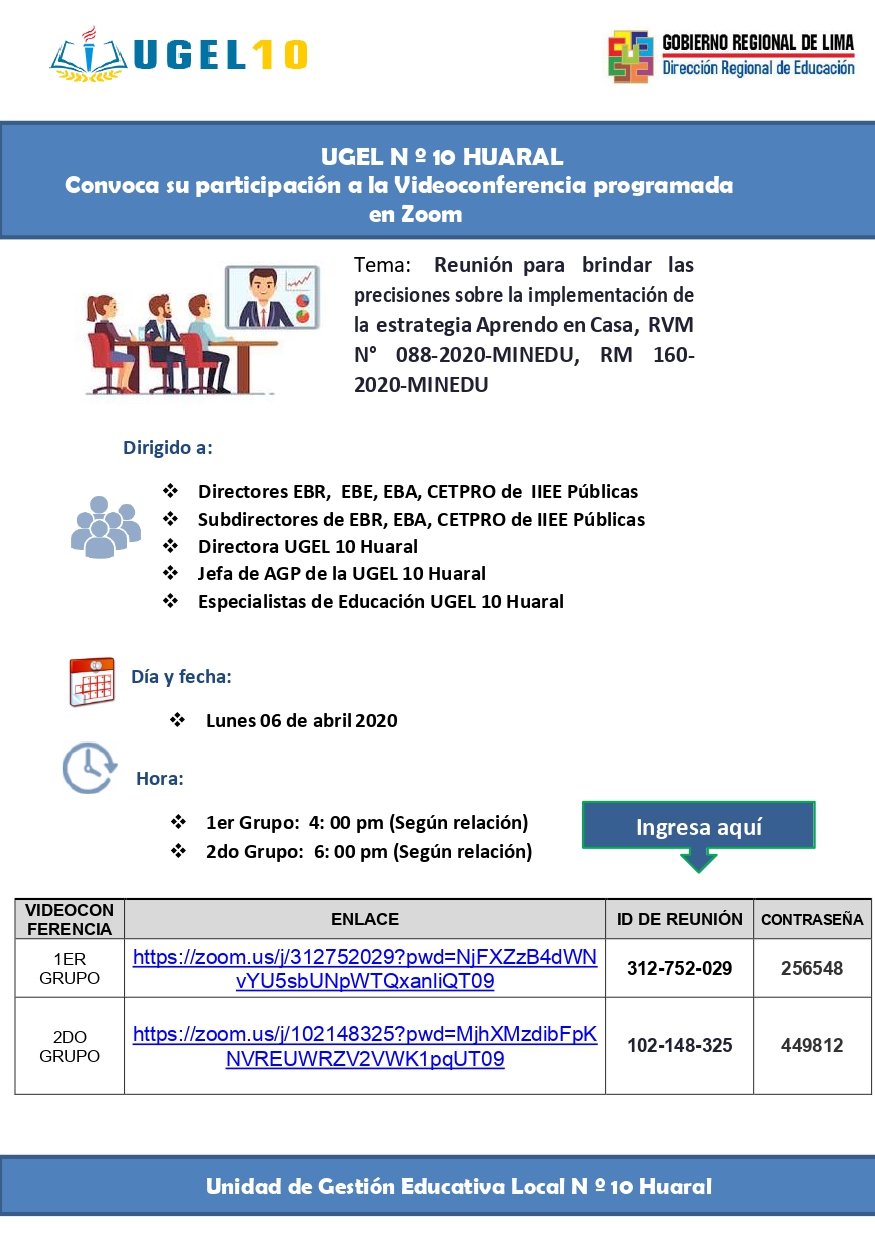 REUNIÓN PARA BRINDAR LAS PRECISIONES SOBRE LA IMPLEMENTACIÓN DE LA ESTRATEGIA APRENDO EN CASA , RVM N°088-2020-MINEDU , RM 160 -2020-MINEDU