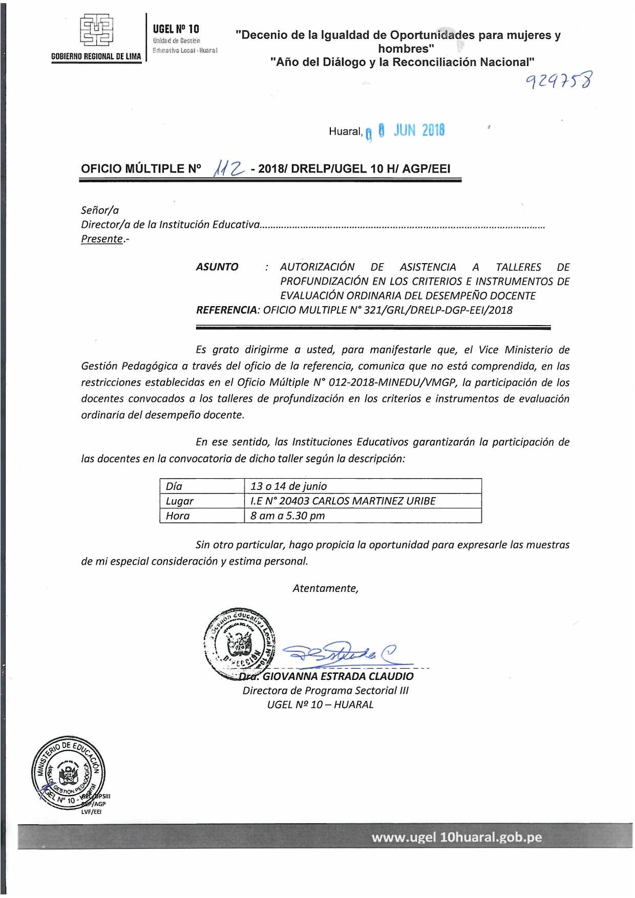 08 Jun,2018 Comunicados COMMENTS Autorización de Asistencia a Talleres de Profundización en los Criterios e Instrumentos de Evaluación Ordinaria del Desempeño Docente.