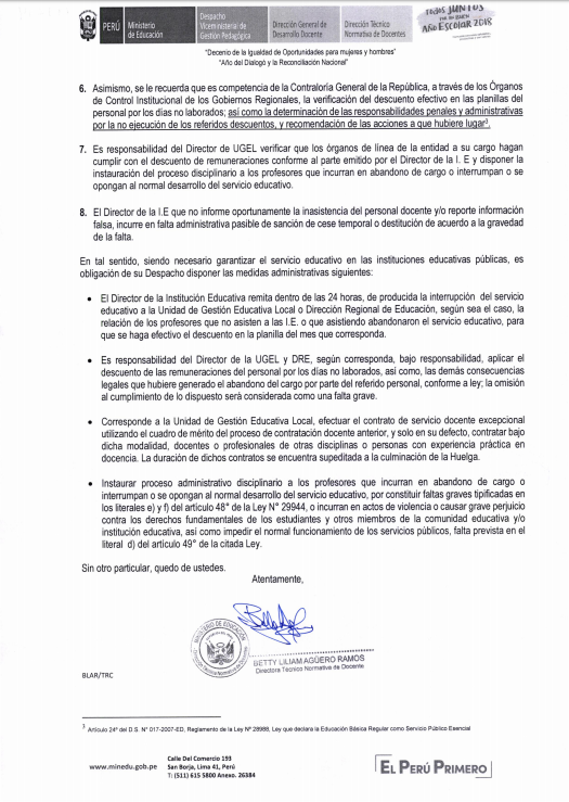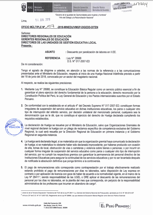 15 Jun,2018 Comunicados COMMENTS Oficio N°107-18-MINEDU - Descuento por Paralización de Labores en II.EE