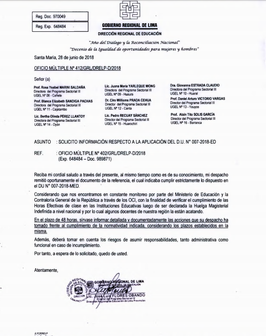 29 Jun,2018 Comunicados COMMENTS Solicitan Información respecto a la aplicación del D.U. N°007-2018-ED