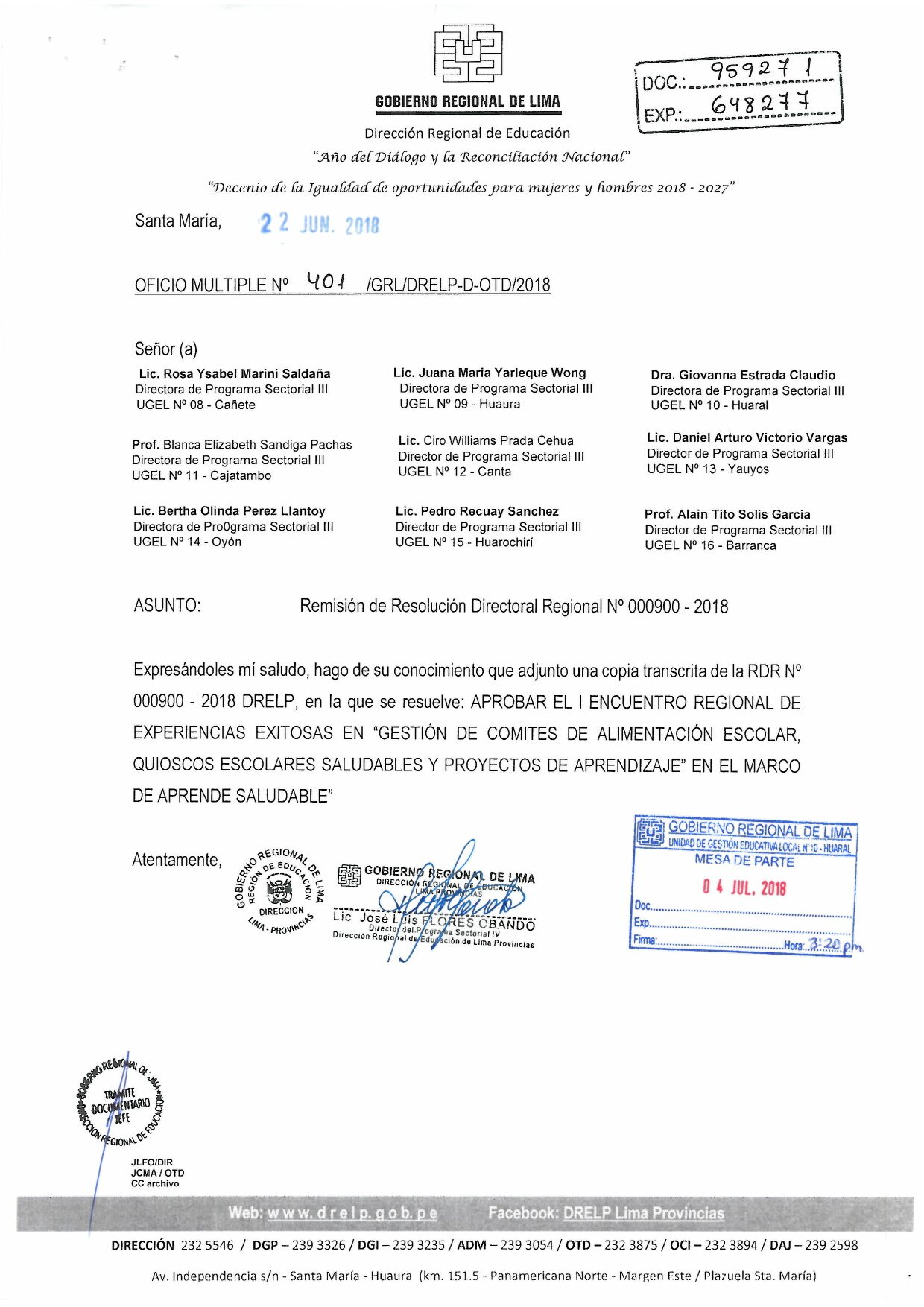 11 Jul,2018 Comunicados COMMENTS I Encuentro Regional de Experiencias Exitosas en "Gestión de Comites de Alimentación Escolar, Quioscos Escolares y Proyectos de Aprendizaje en el Marco de Aprende Saludable" ver Directiva Regional N°024-2018