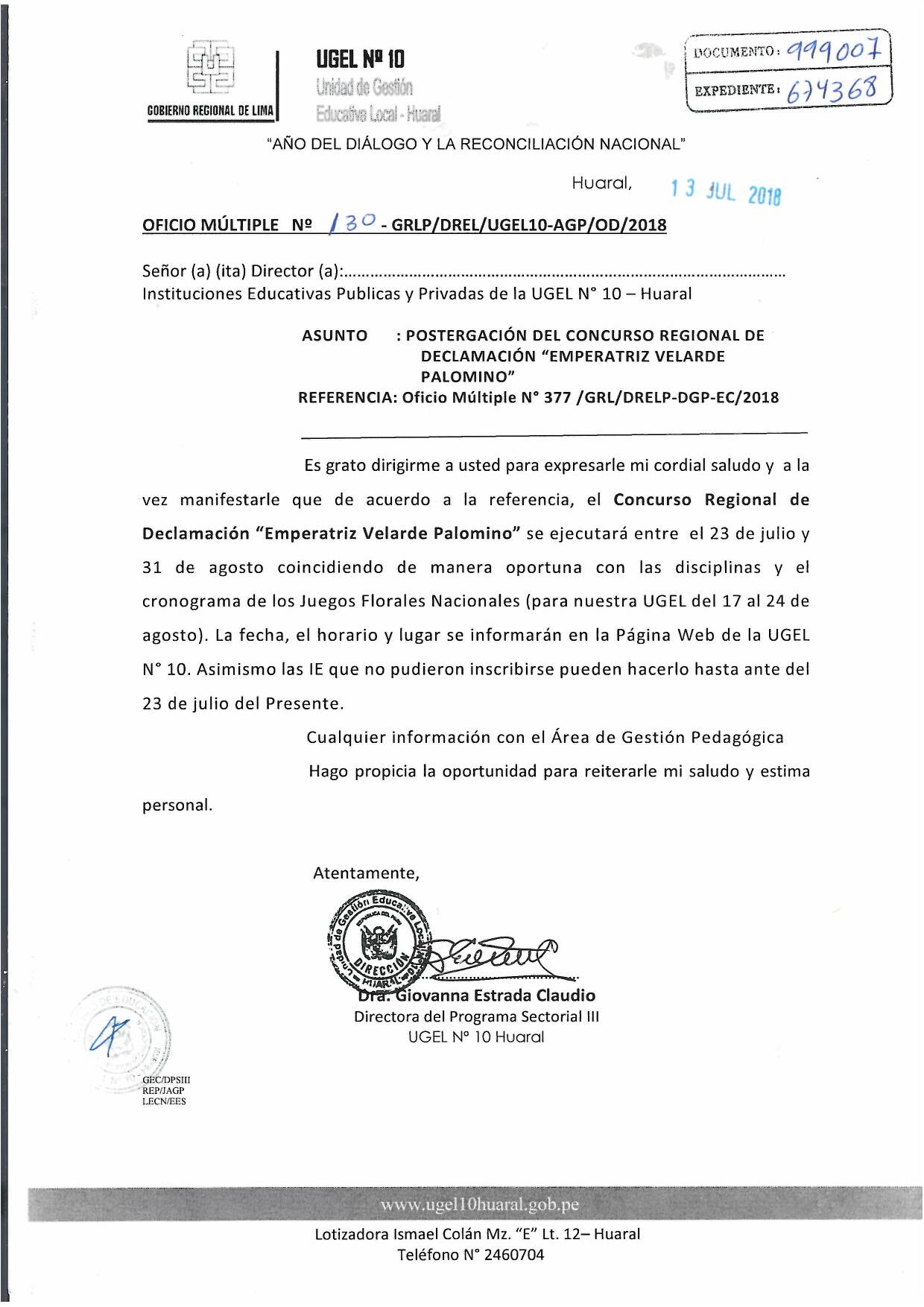 13 Jul,2018 Comunicados COMMENTS Postergación del Concurso Regional de Declamación "Emperatriz Velarde Palomino". ver directiva N° 0016-2018 "XIII Concurso Regional de Declamación 2018"