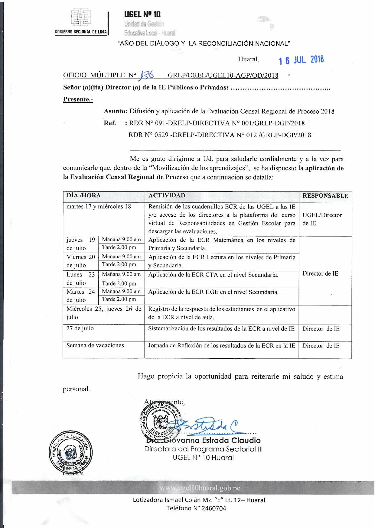 16 Jul,2018 Comunicados COMMENTS Difusión y aplicación de la Evaluación Censal Regional de Proceso 2018.