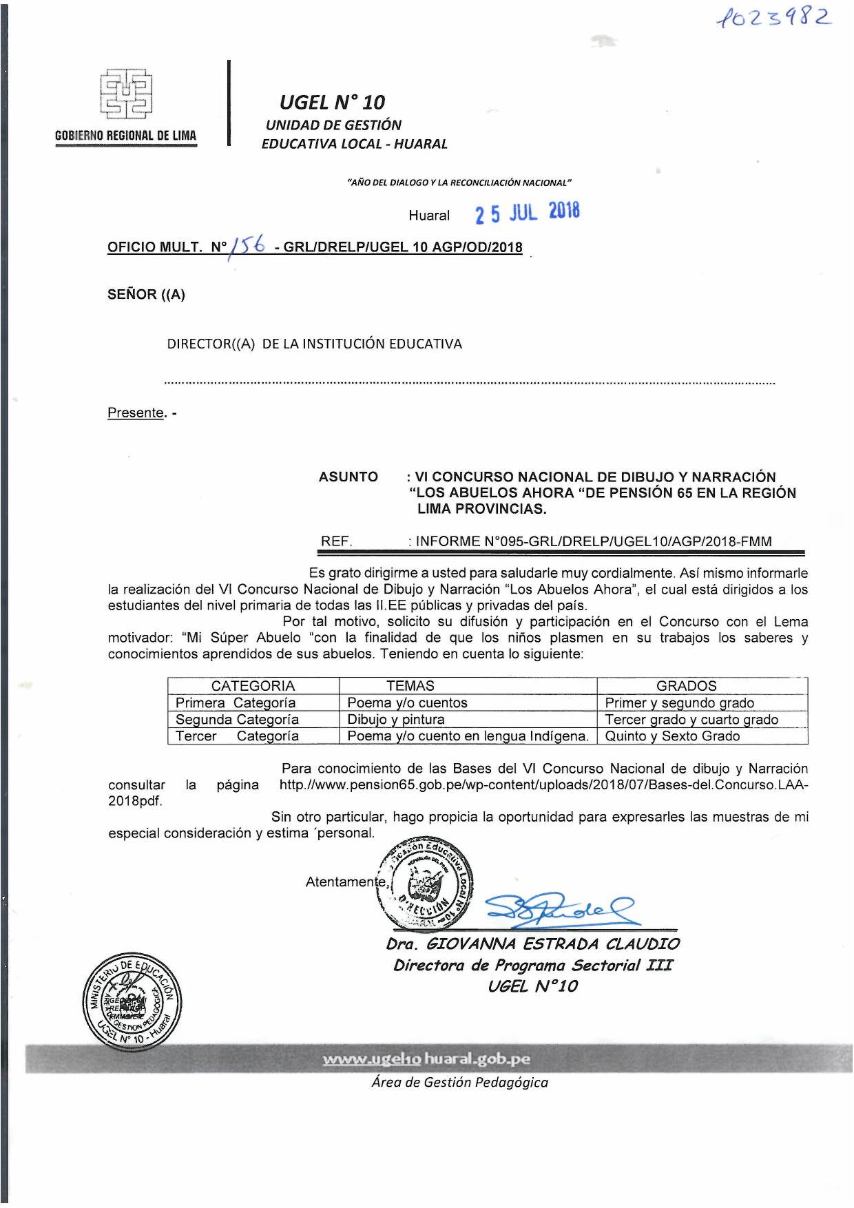 06 Ago,2018 Comunicados COMMENTS VI Concurso Nacional de Dibujo y Narración "Los Abuelos Ahora" Dirigido a estudiantes del nivel Primaria de todas las II.EE Públicas y Privadas. ver bases del concurso