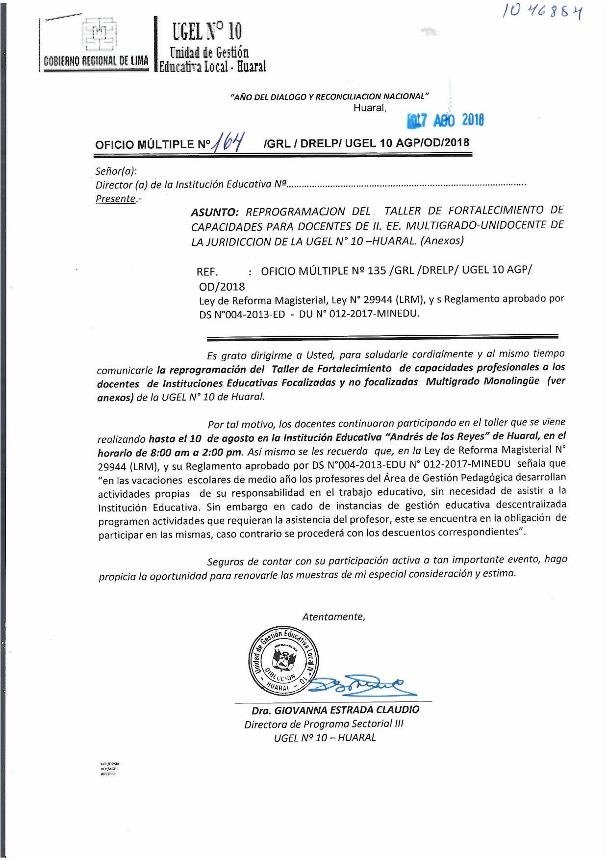 07 Ago,2018 Comunicados COMMENTS Reprogramación del Taller de Fortalecimiento de Capacidades para Docentes de II.EE Multigrado-Unidocente