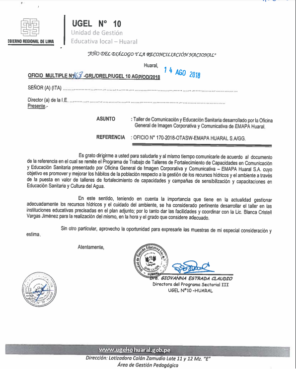16 Ago,2018 Comunicados COMMENTS Taller de Comunicación y Educación Sanitaria desarrollado por la Oficina General de Imagen Corporativa y Comunicativa de EMAPA Huaral VER PLAN DE TRABAJO 2018