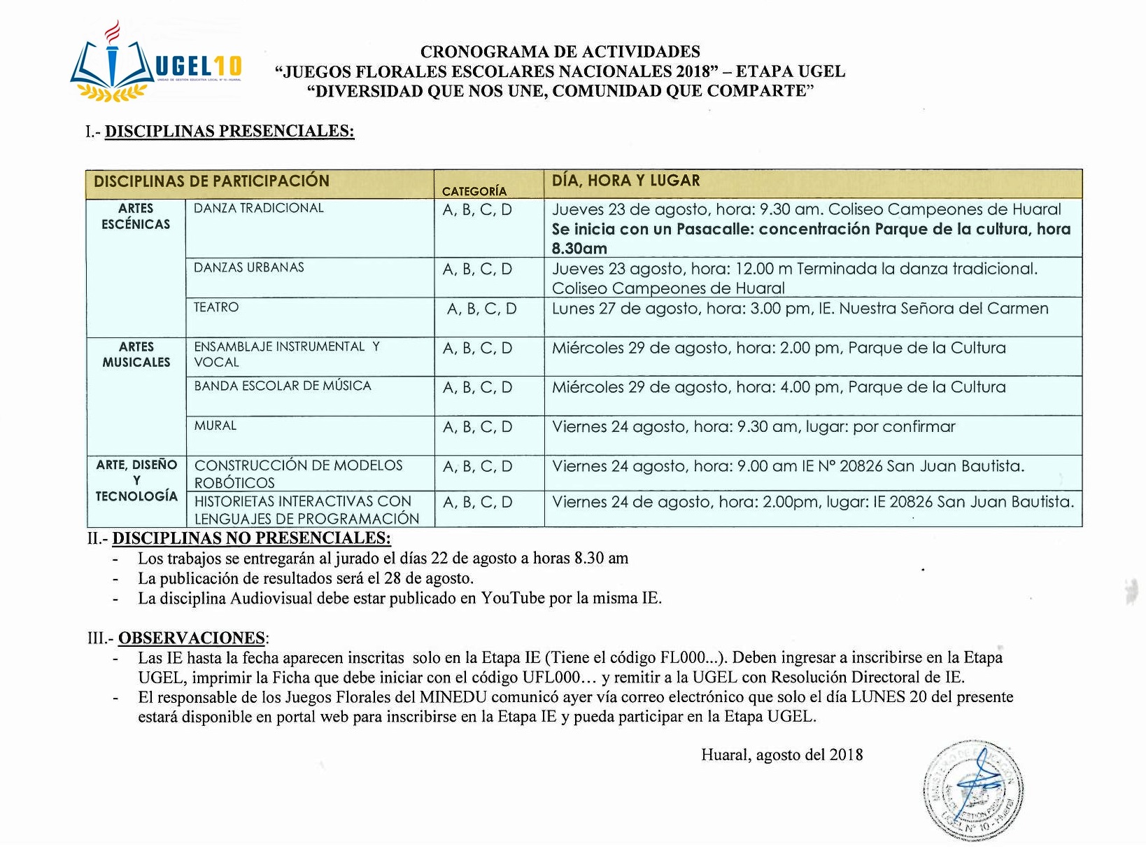 16 Ago,2018 Comunicados COMMENTS "Juegos Florales Escolares Nacionales 2018" - Etapa UGEL [Cronograma]