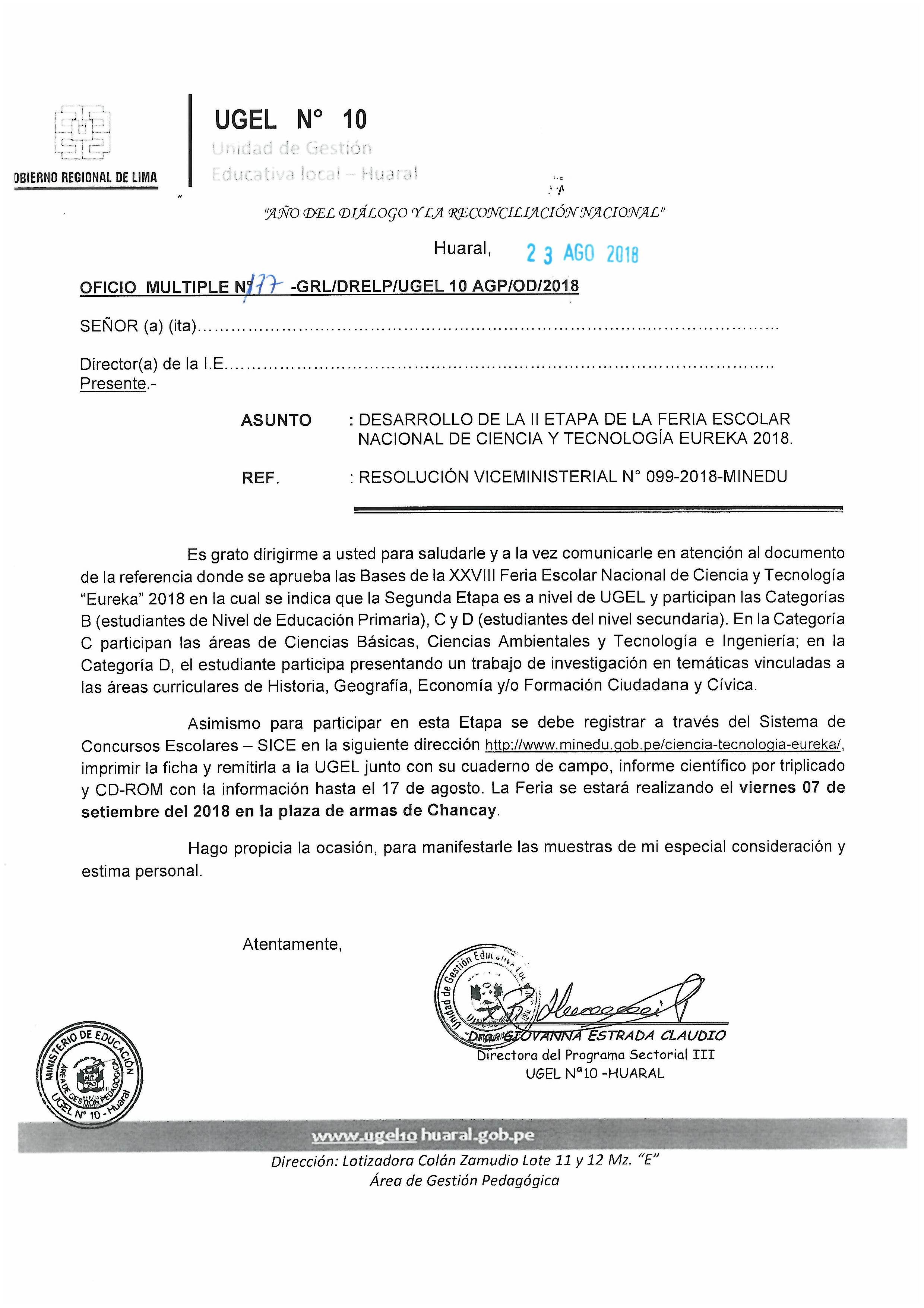 23 Ago,2018 Comunicados COMMENTS DESARROLLO DE LA II ETAPA DE LA FERIA ESCOLAR NACIONAL DE CIENCIA Y TECNOLOGÍA EUREKA 2018.