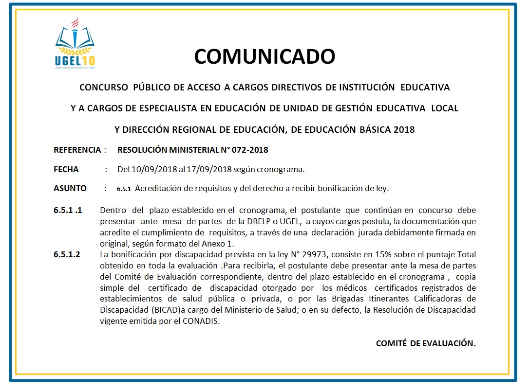 04 Sep,2018 Comunicados COMMENTS Concurso Público de Acceso a Cargos Directivos de Institución Educativa Y a Cargos de Especialista en Educación de Unidad de Gestión Educativa Local Y Dirección Regional de Educación, de Educación Básica 2018