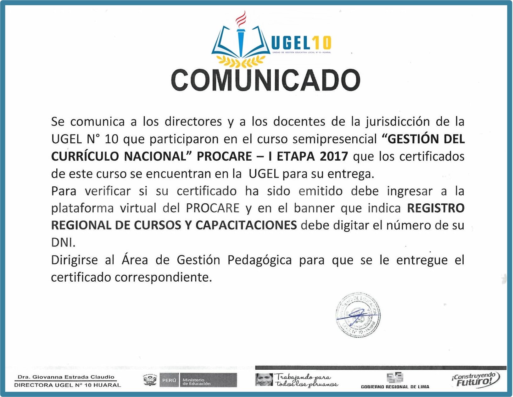14 Sep,2018 Comunicados COMMENTS Comunicado a Directores y Docentes que participaron en el Curso Semipresencial "Gestión del Currículo Nacional" PROCARE - I Etapa 2017
