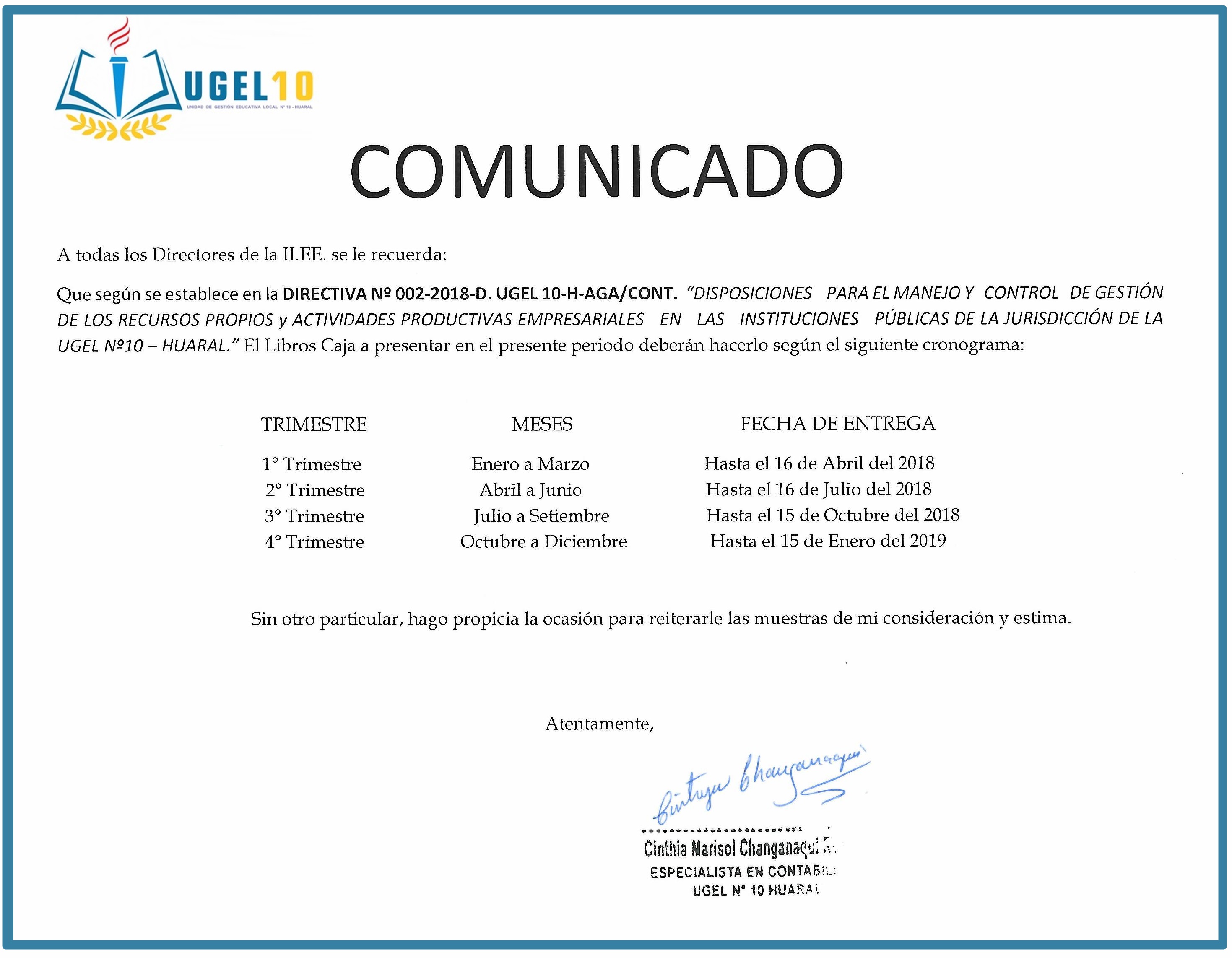 01 Oct,2018 Comunicados COMMENTS Comunicado de Oficina de Contabilidad para todos los Directores de II.EE.