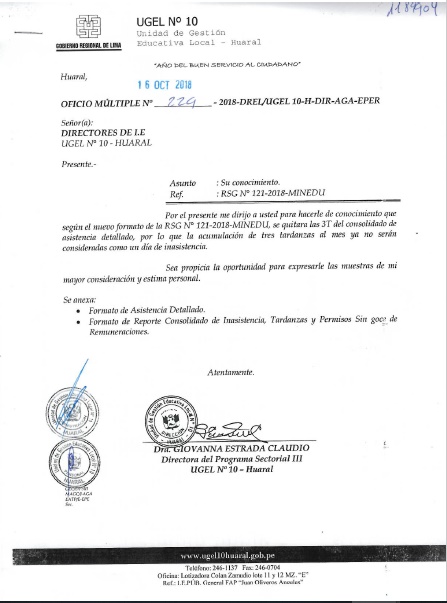 Horarios de atención UGEL N°10: Lunes a Viernes de 08:30 a.m. - 12:30 p.m. y de 14:00 p.m. - 16:30 p.m.